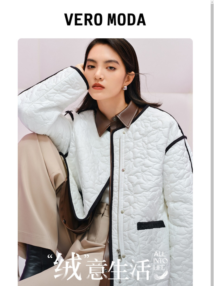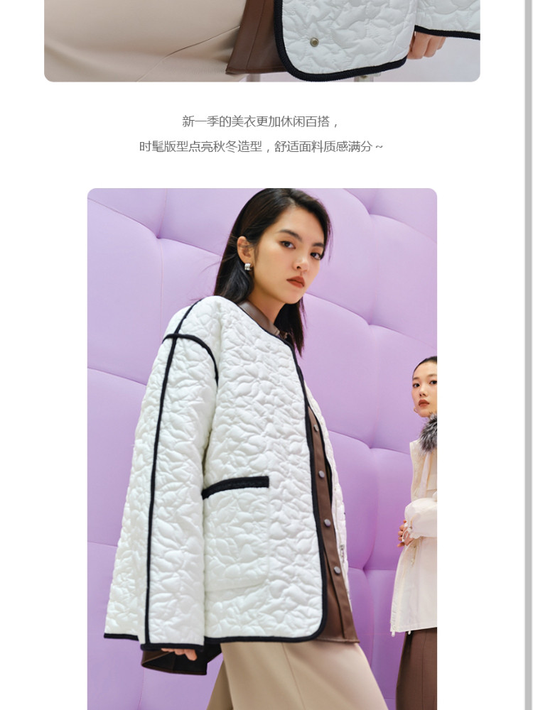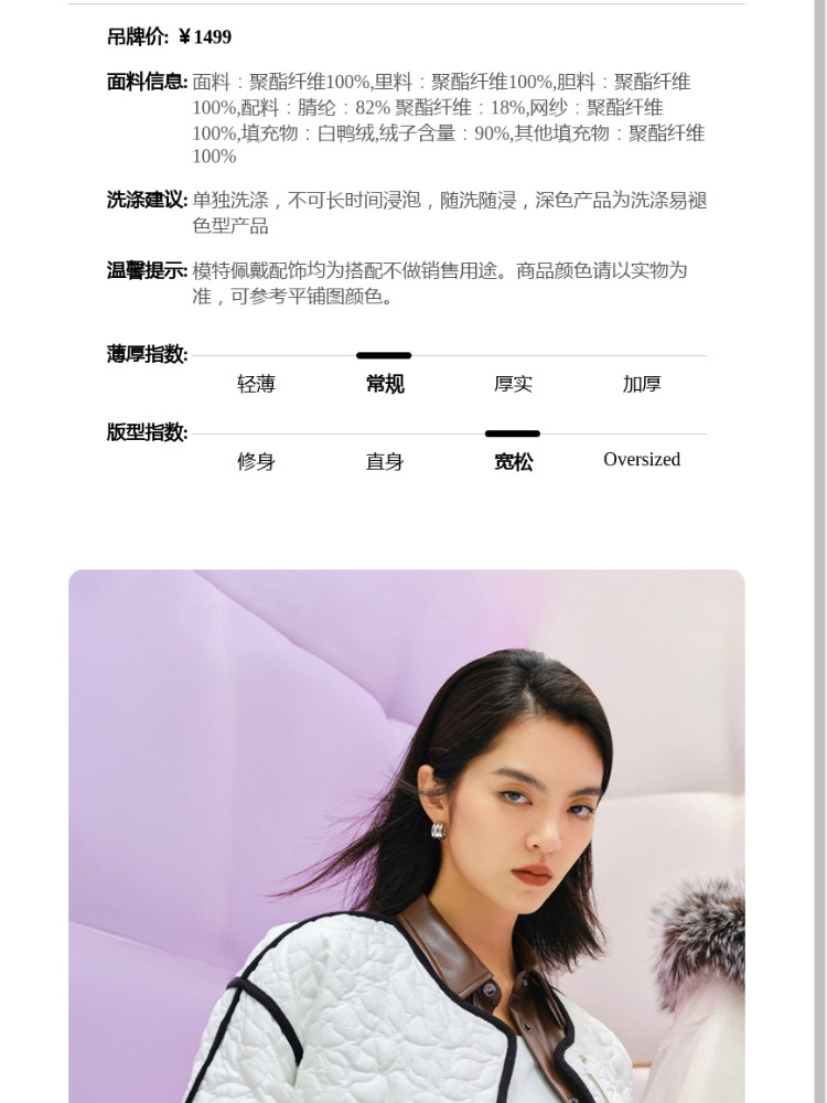 商品名称:【秋冬专柜款】90%白鸭绒宽松圆领简约通勤气质羽绒服 054673