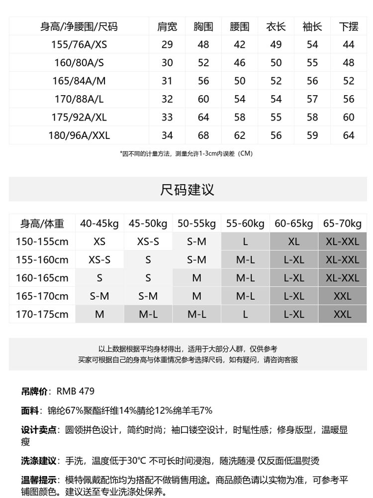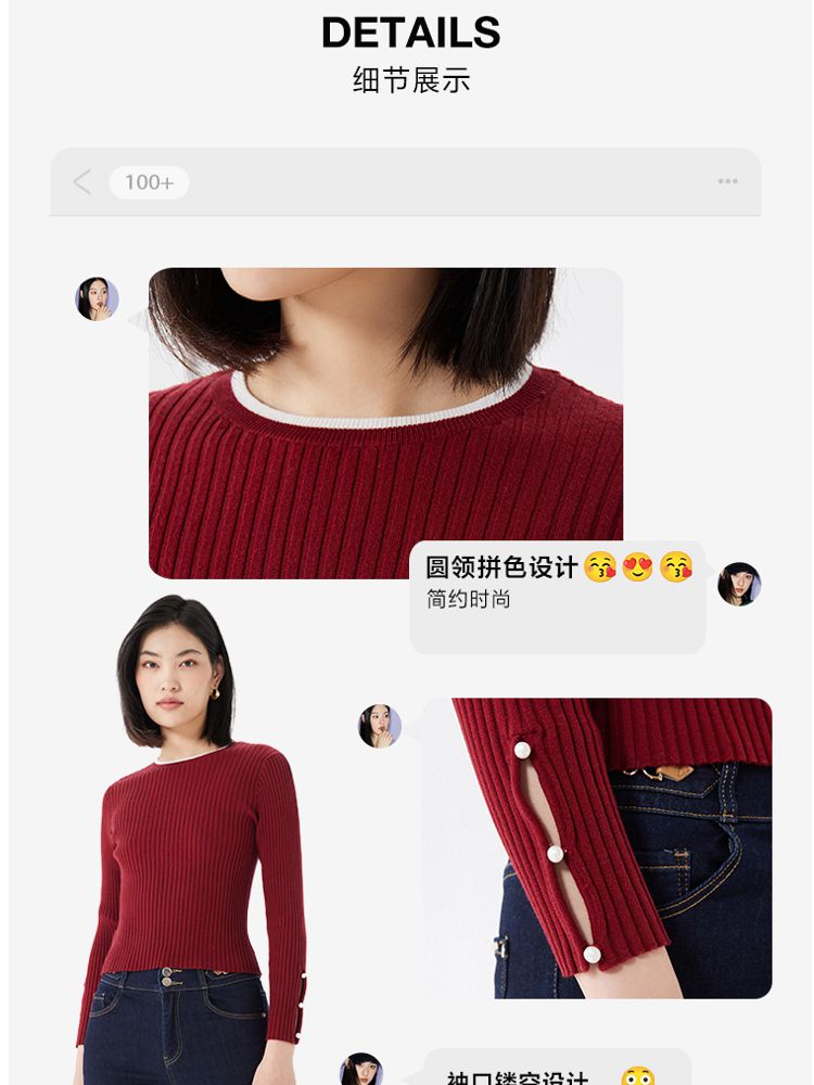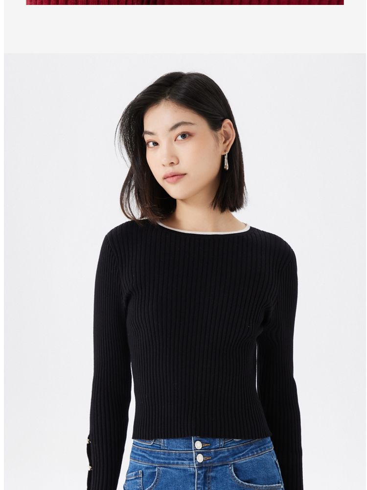 商品名称:圆领修身长袖针织衫毛衣女气质百搭时尚春夏 615313