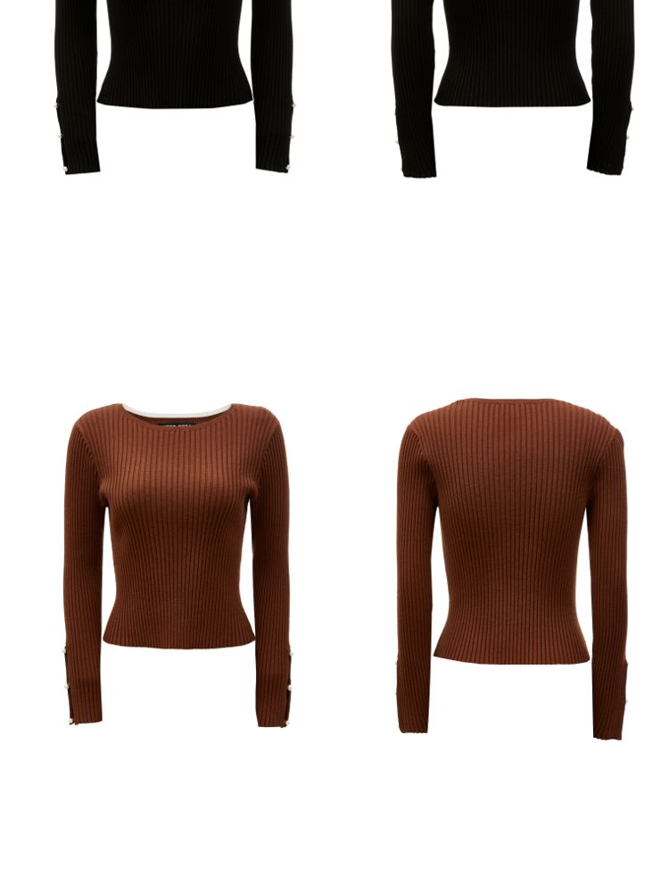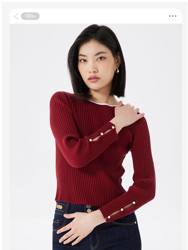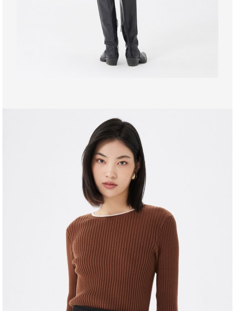 圆领修身长袖针织衫毛衣女气质百搭时尚春夏 615313