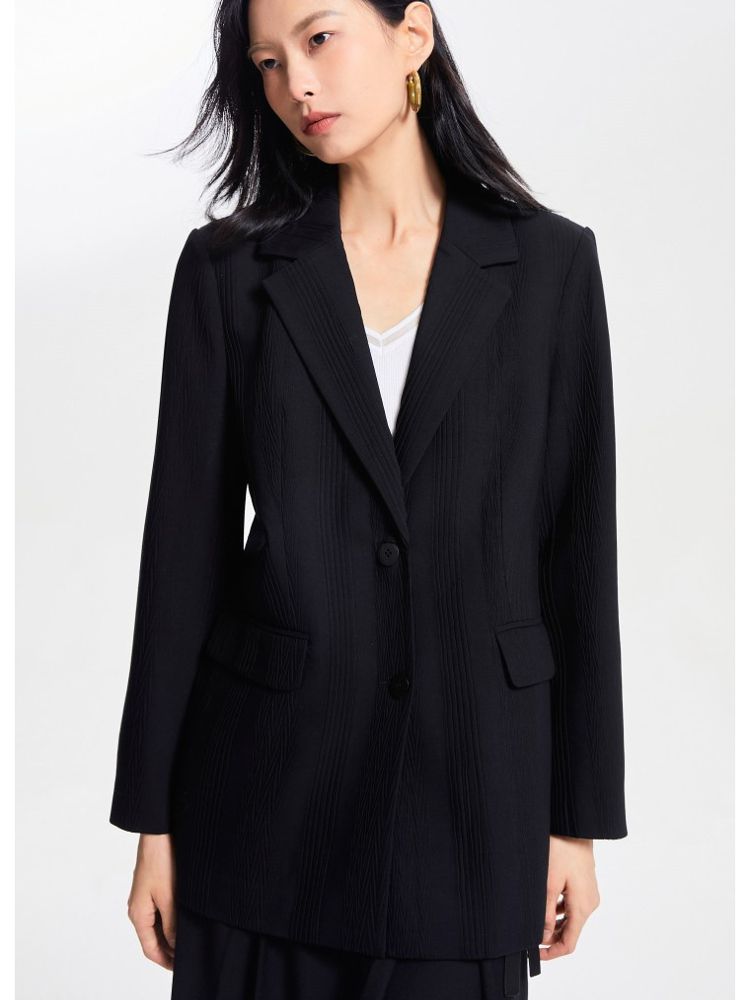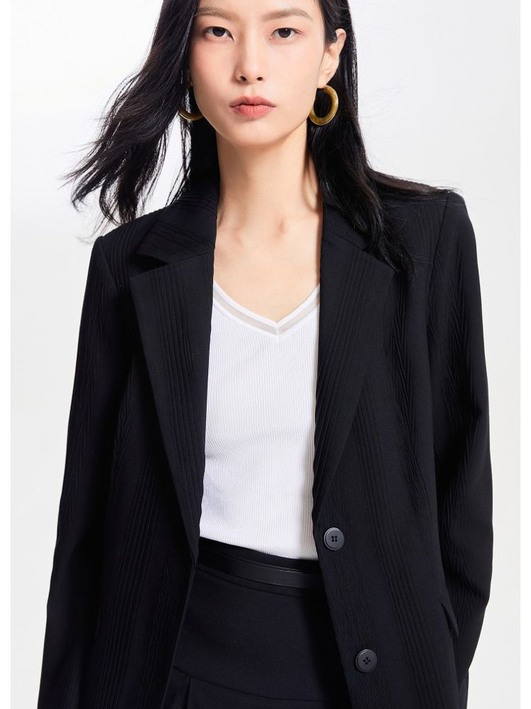 【薄垫肩设计】春夏直筒翻领肌理感简约质感西装外套女百搭时尚 514641