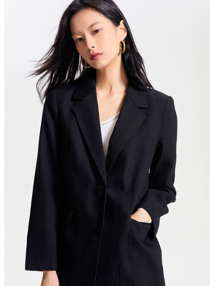 商品名称:【薄垫肩设计】春夏直筒翻领肌理感简约质感西装外套女百搭时尚 514641