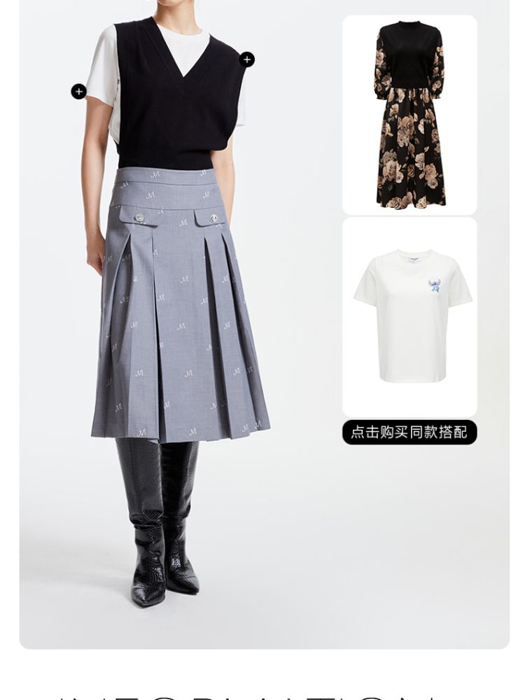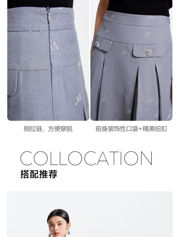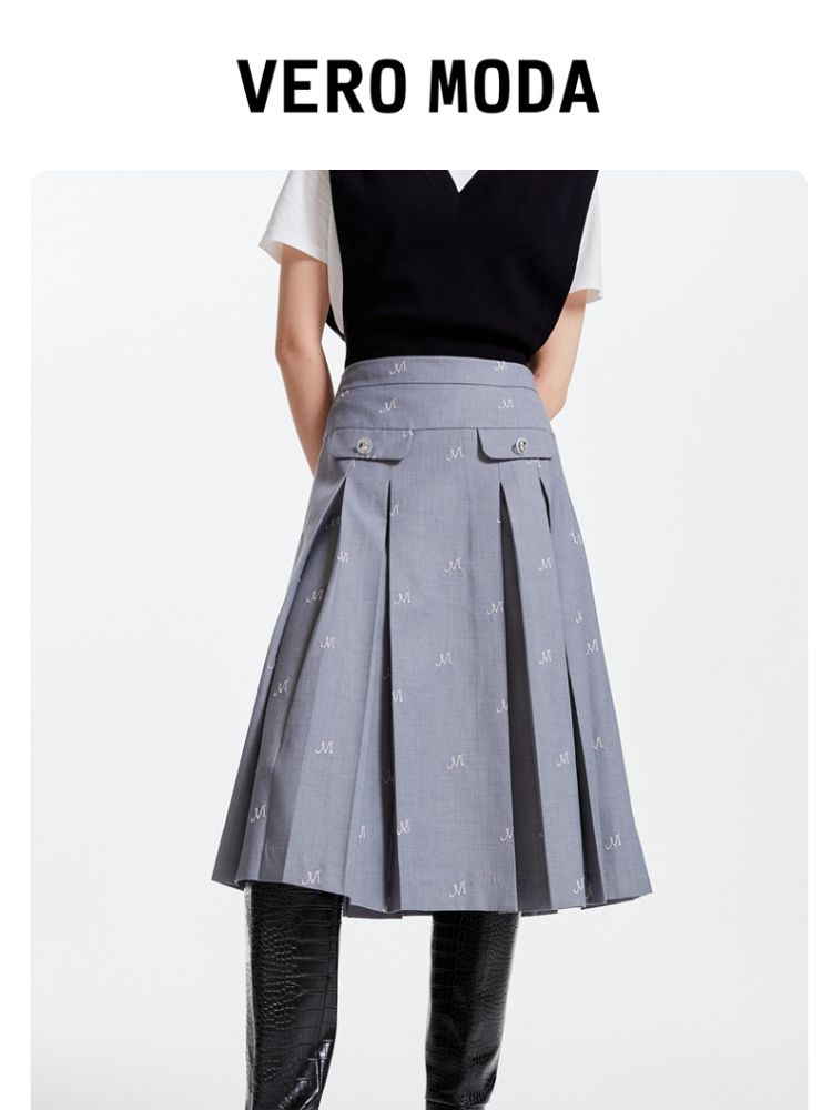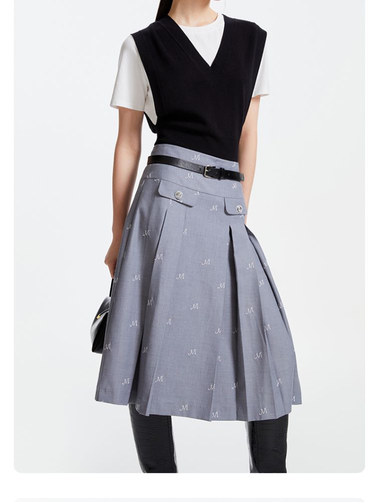 商品名称:【春夏专柜款】字母刺绣A摆百褶裙休闲学院风半身裙气质百搭时尚 365329