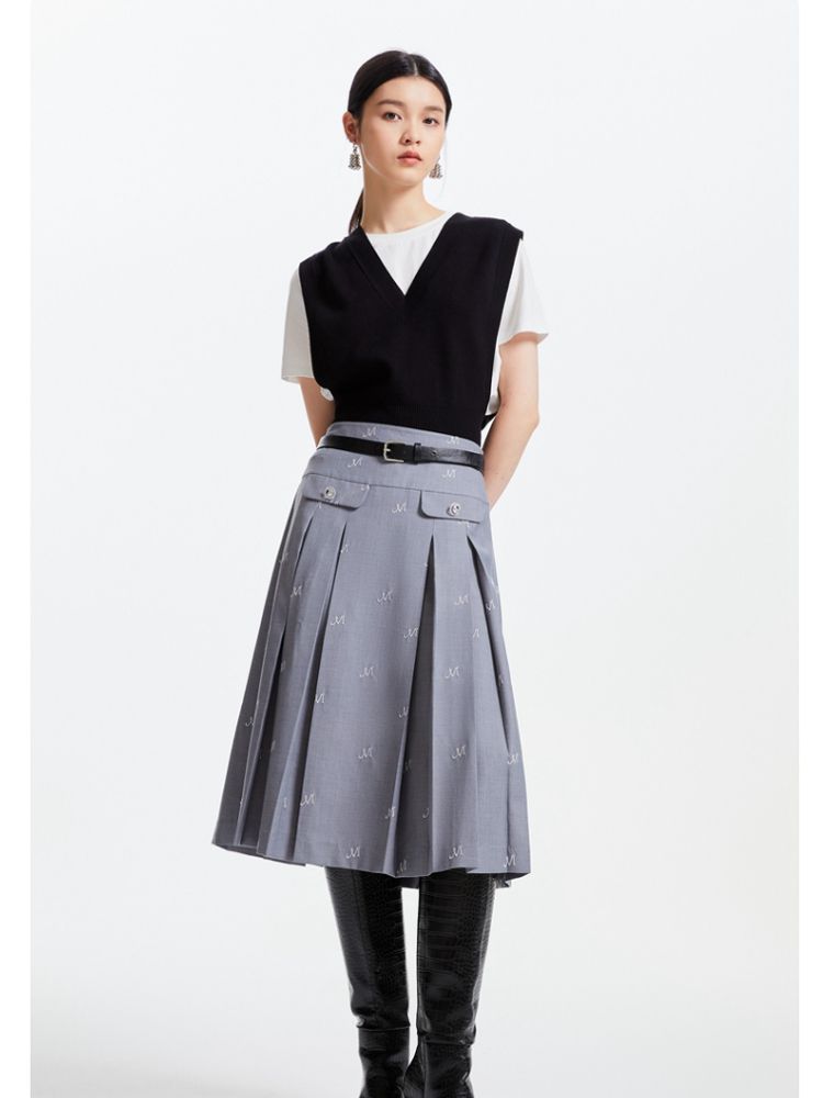 【春夏专柜款】字母刺绣A摆百褶裙休闲学院风半身裙气质百搭时尚 365329