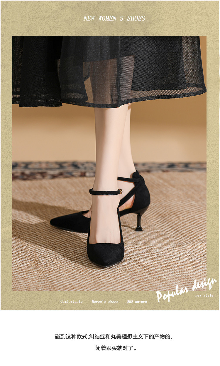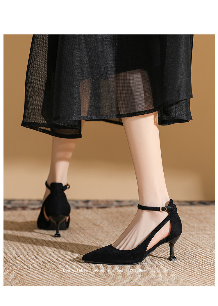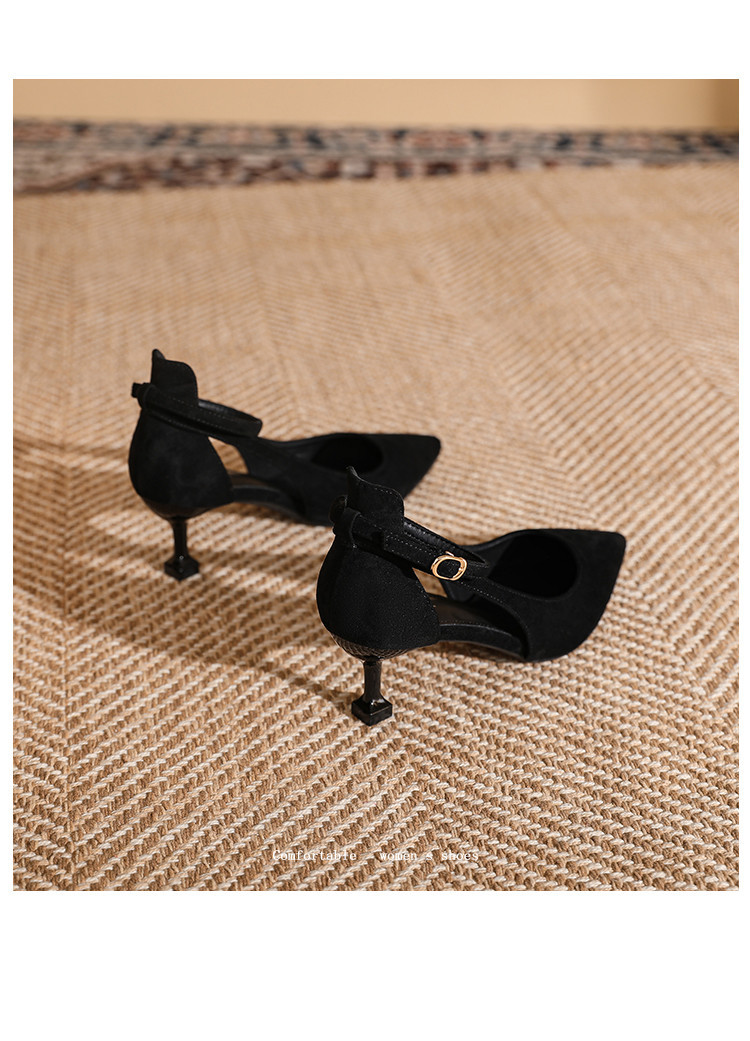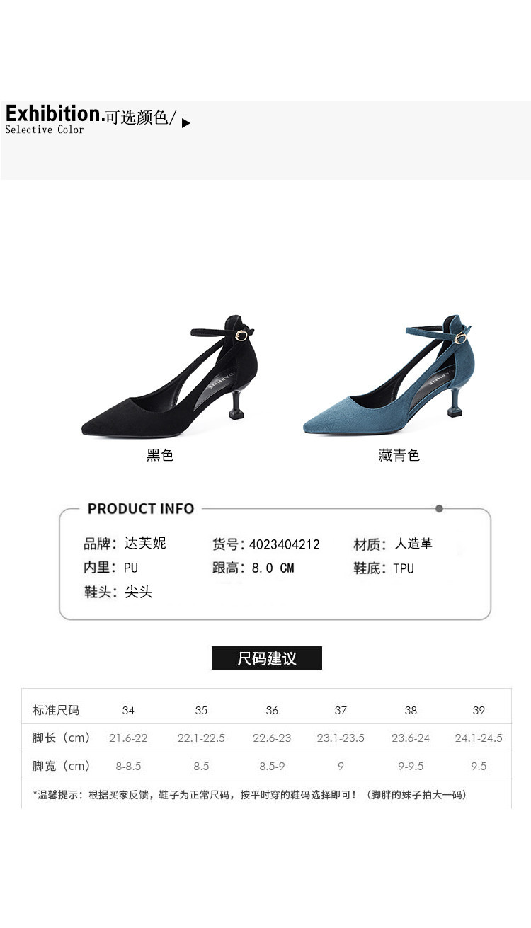 商品名称:夏季一字带中空凉鞋高跟鞋女单鞋百搭时装鞋通勤鞋扣饰线条女鞋 736599
