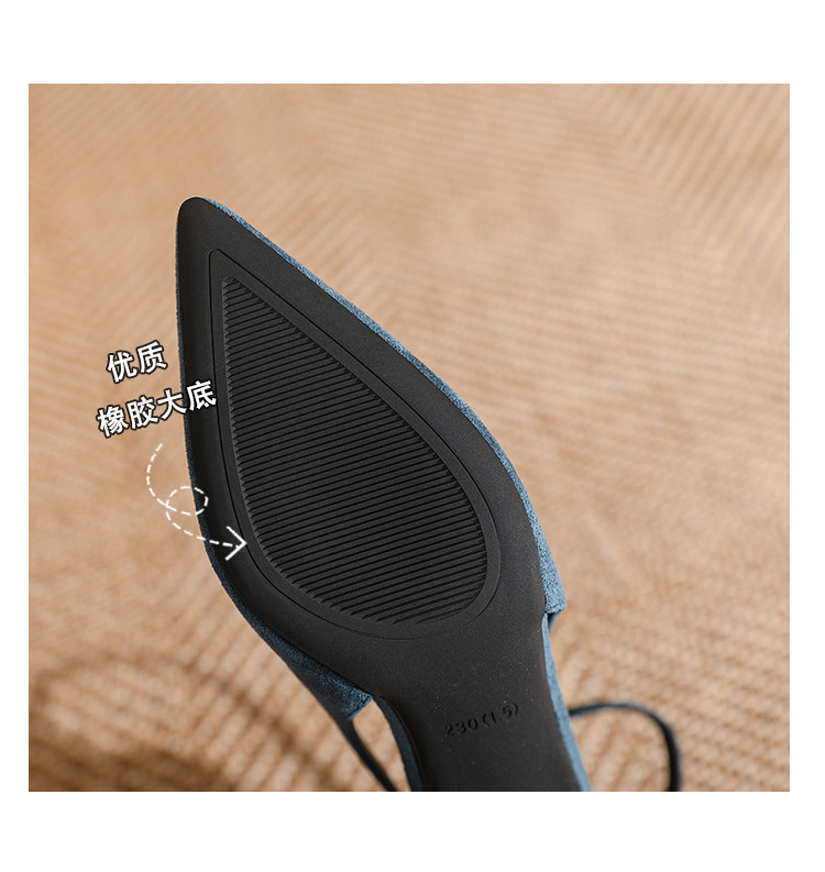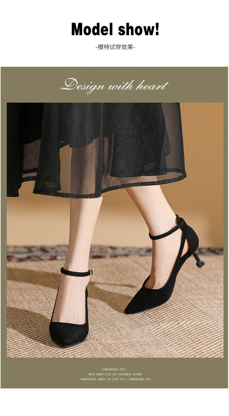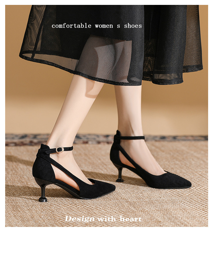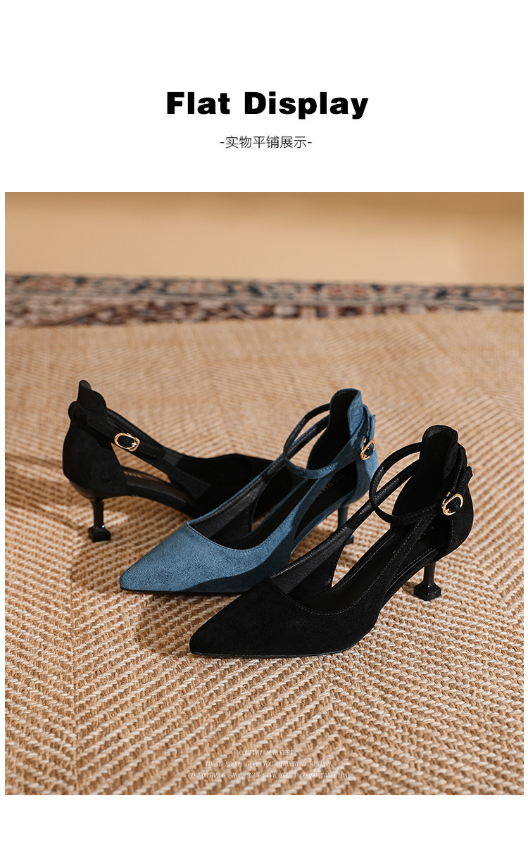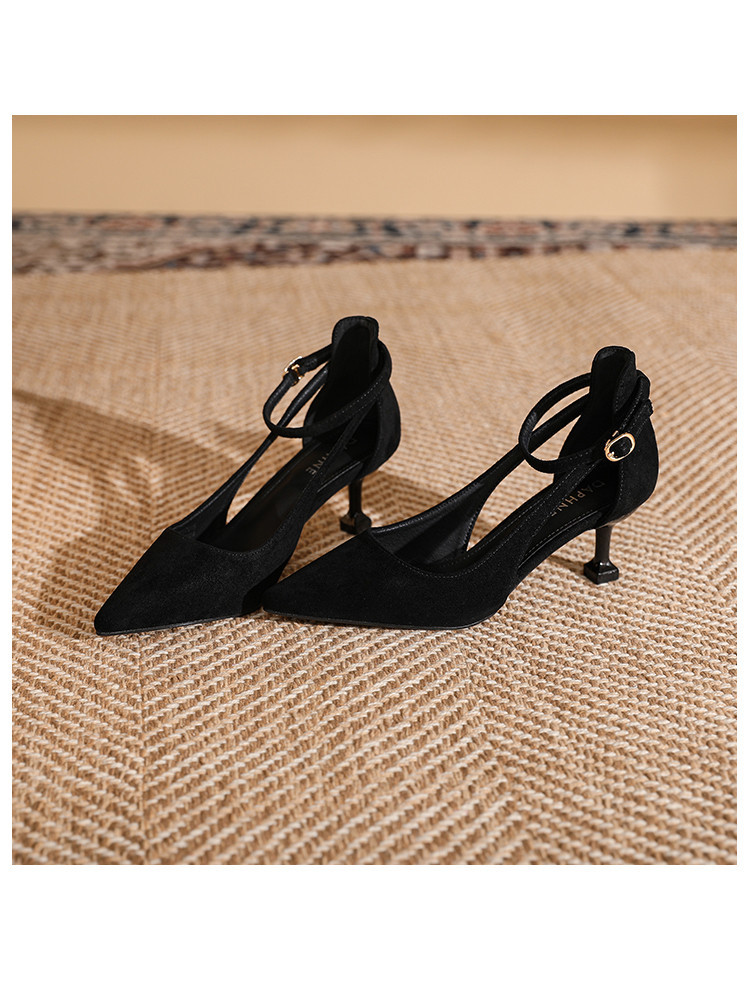 商品名称:夏季一字带中空凉鞋高跟鞋女单鞋百搭时装鞋通勤鞋扣饰线条女鞋 736599