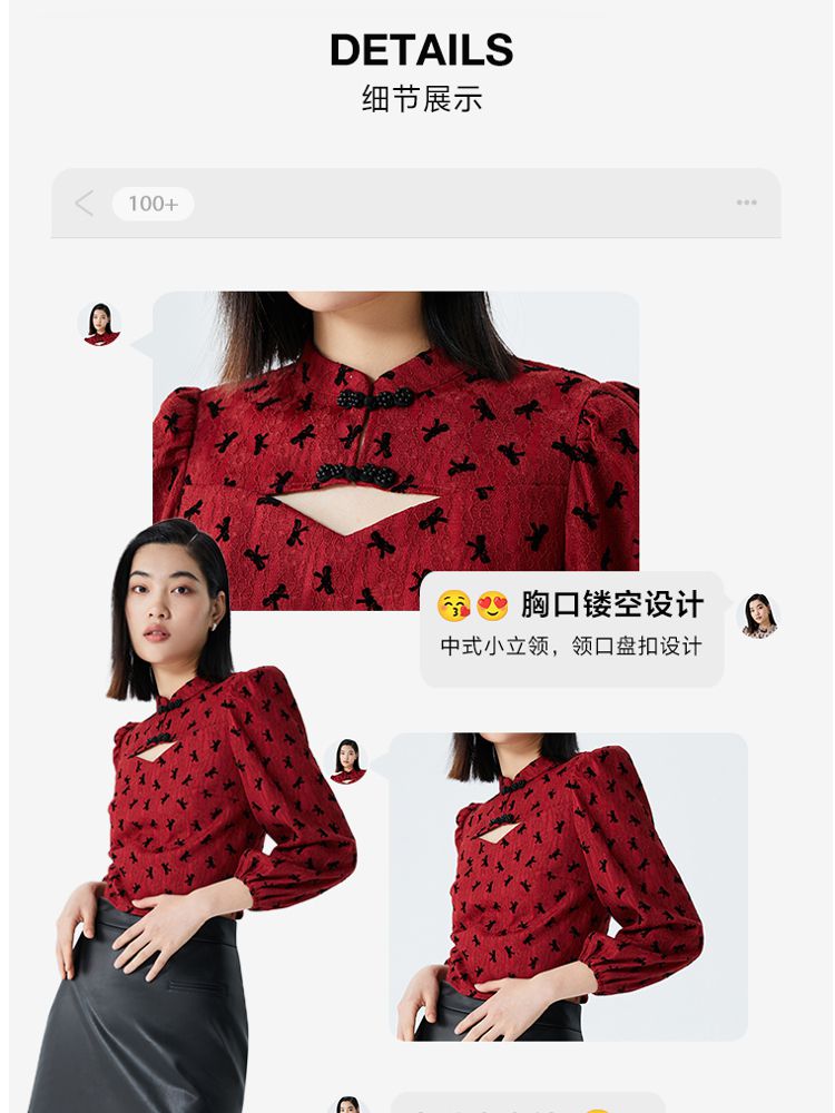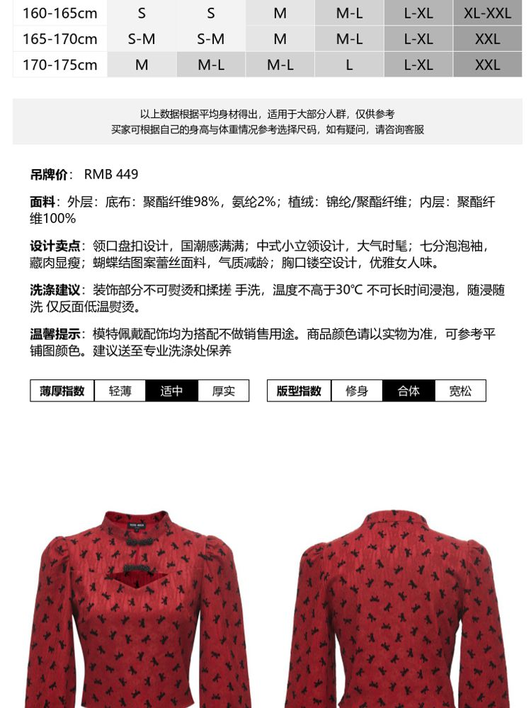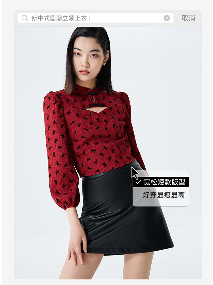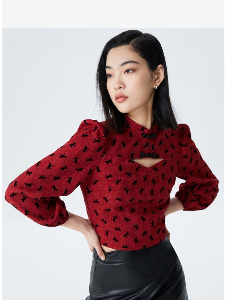 商品名称:短款立领盘扣七分泡泡袖新中式国潮上衣女气质百搭时尚春夏 736081