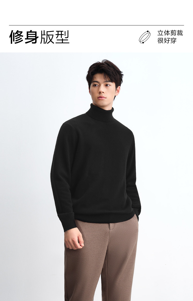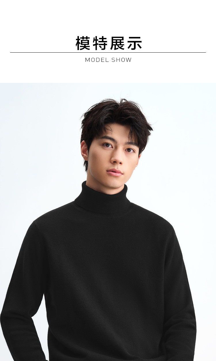 商品名称:【反季】冬季纯羊毛修身可翻高领加厚休闲保暖男士长袖羊毛衫 764360