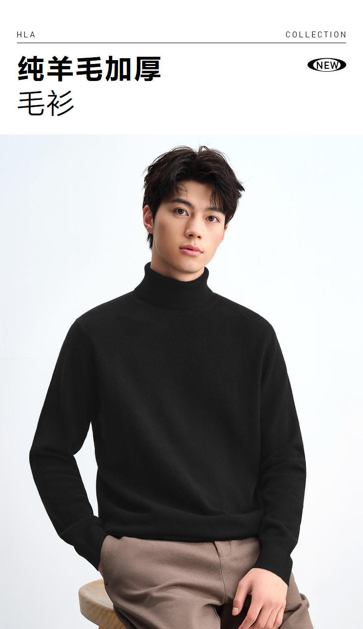 【反季】冬季纯羊毛修身可翻高领加厚休闲保暖男士长袖羊毛衫 764360