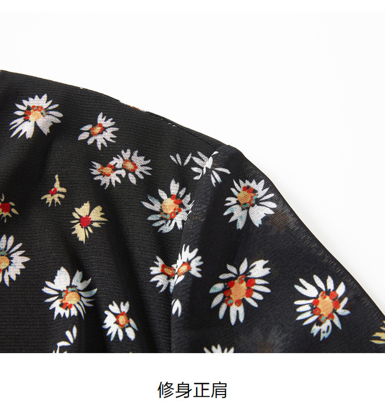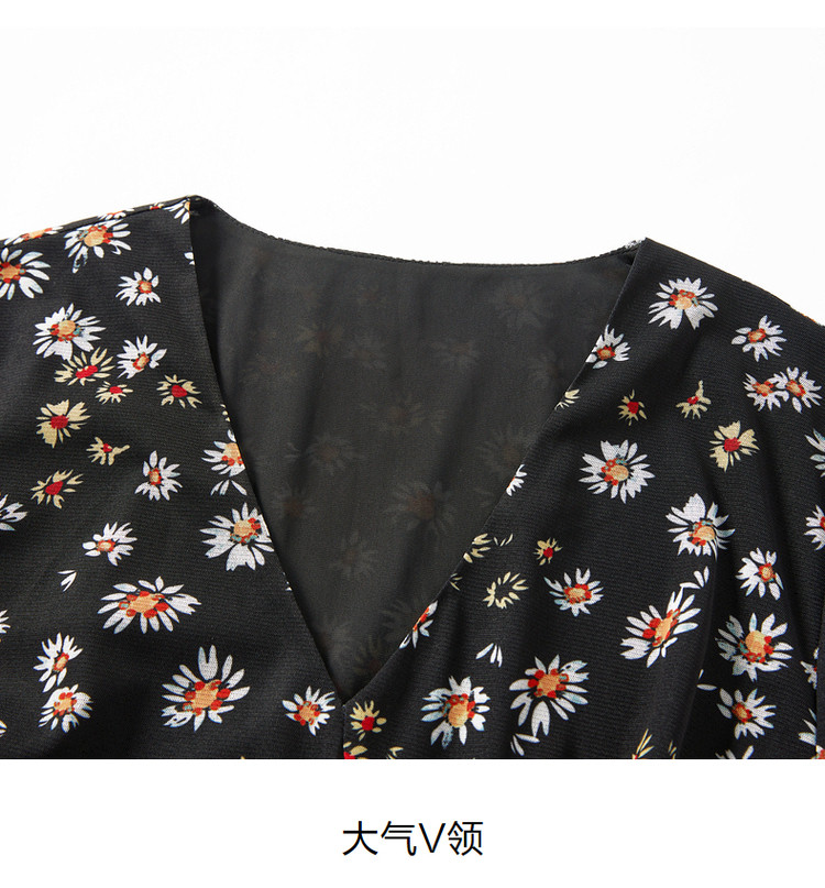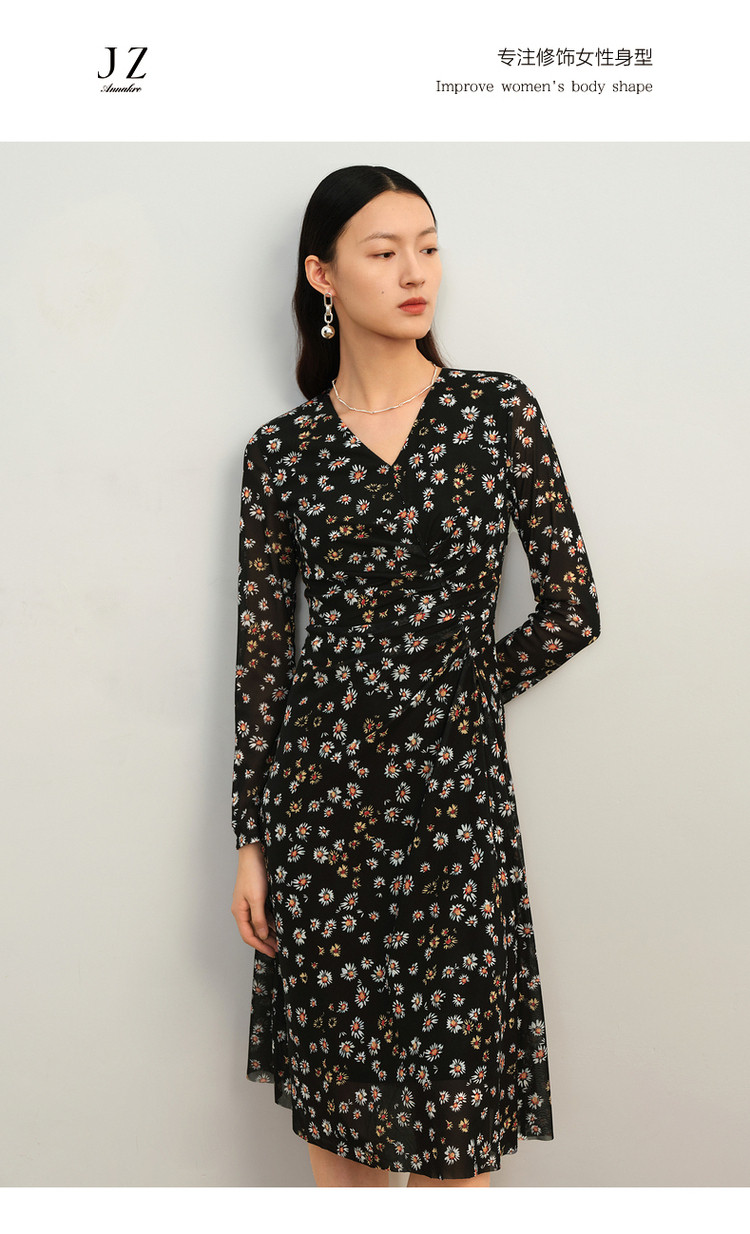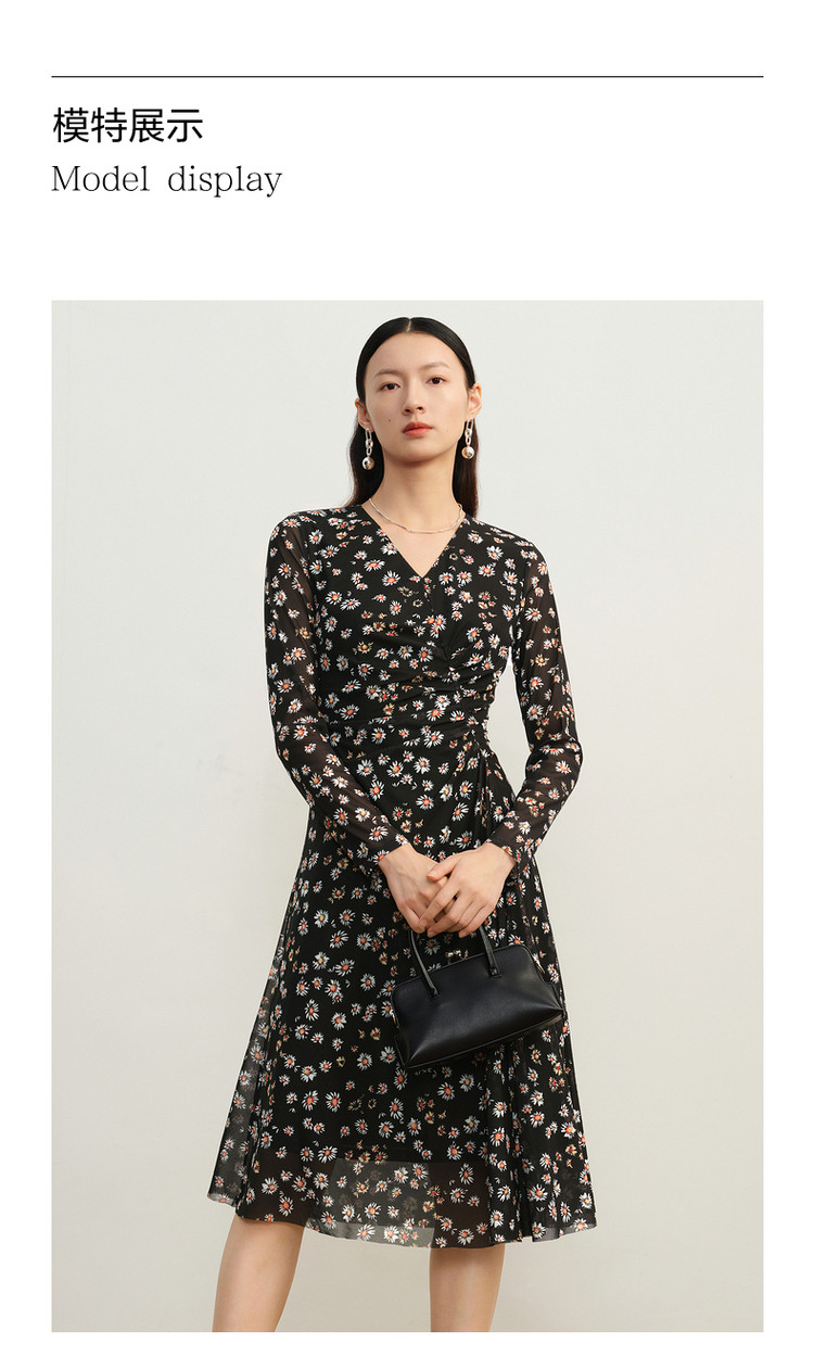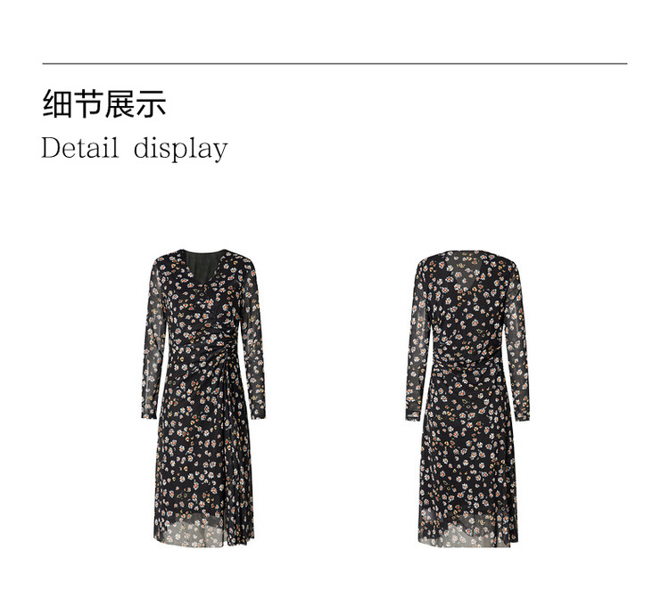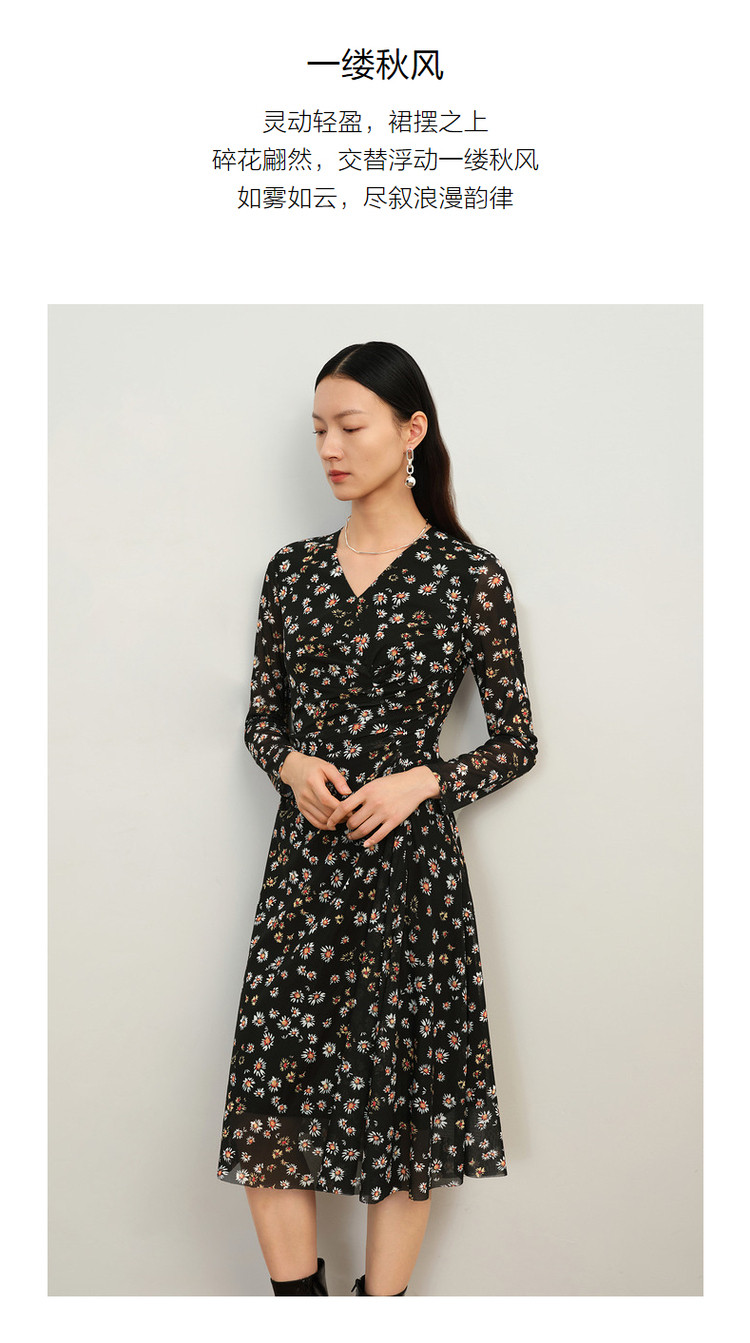 商品名称:玖姿旗下安娜蔻系列雅致V领修身碎花沙罗面料连衣裙女秋季 100620
