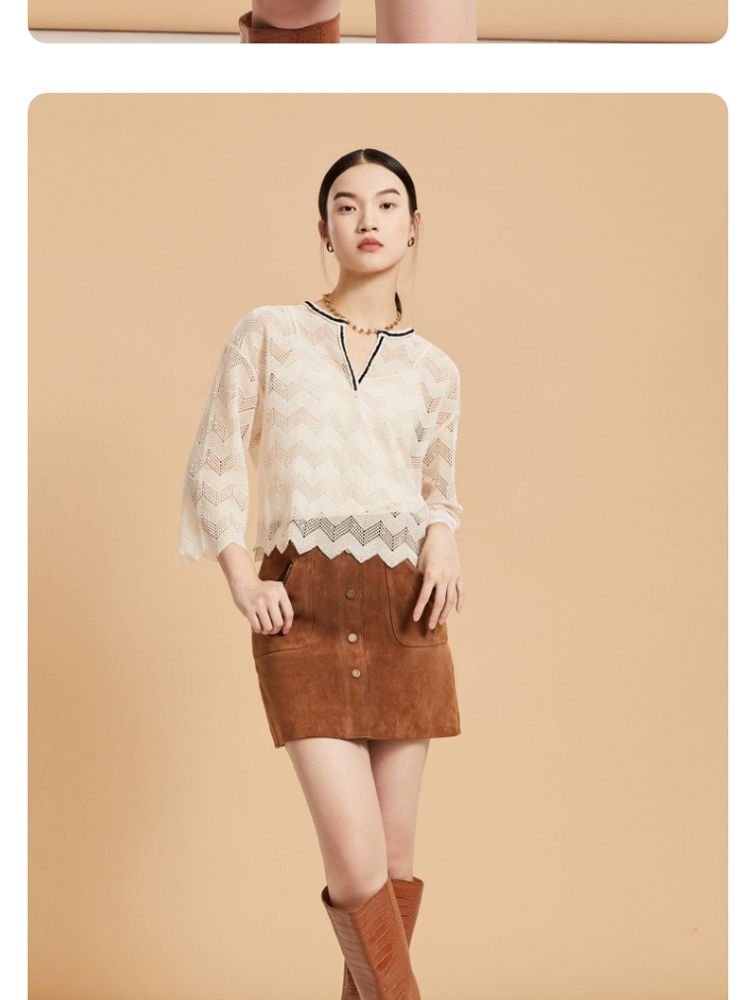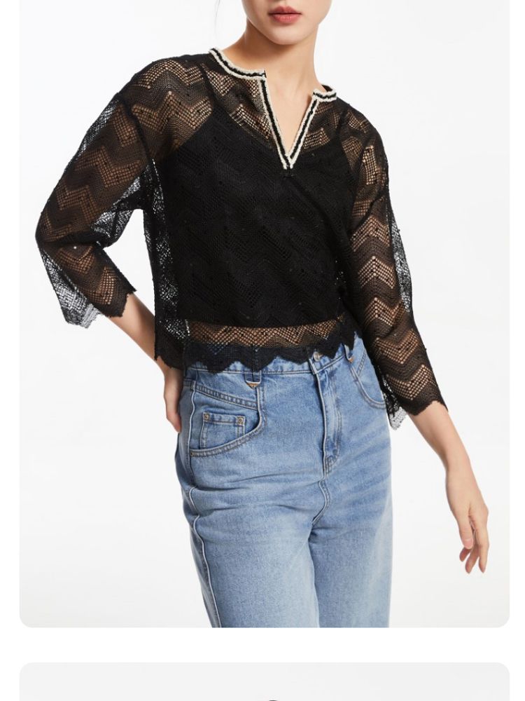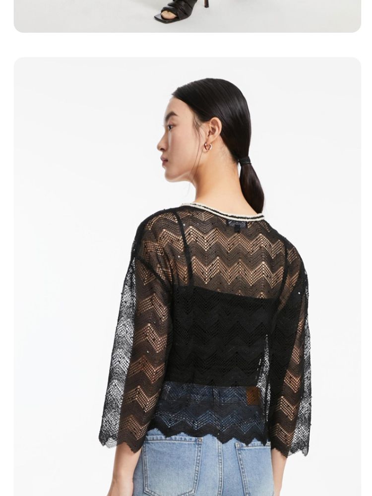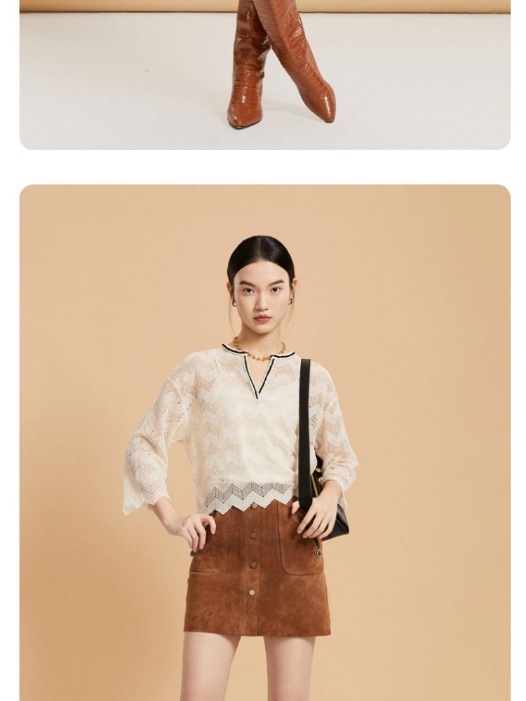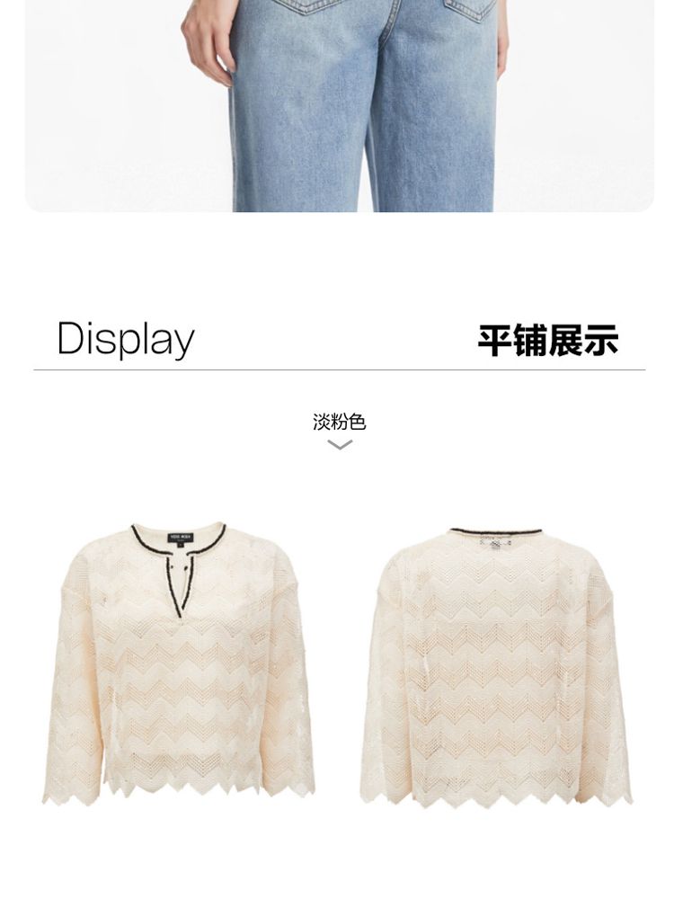 【秋专柜款】宽松圆领镂空编织七分袖优雅通勤T恤上衣女 331793