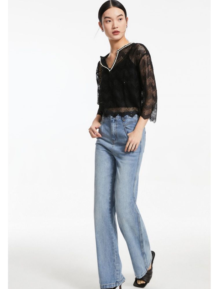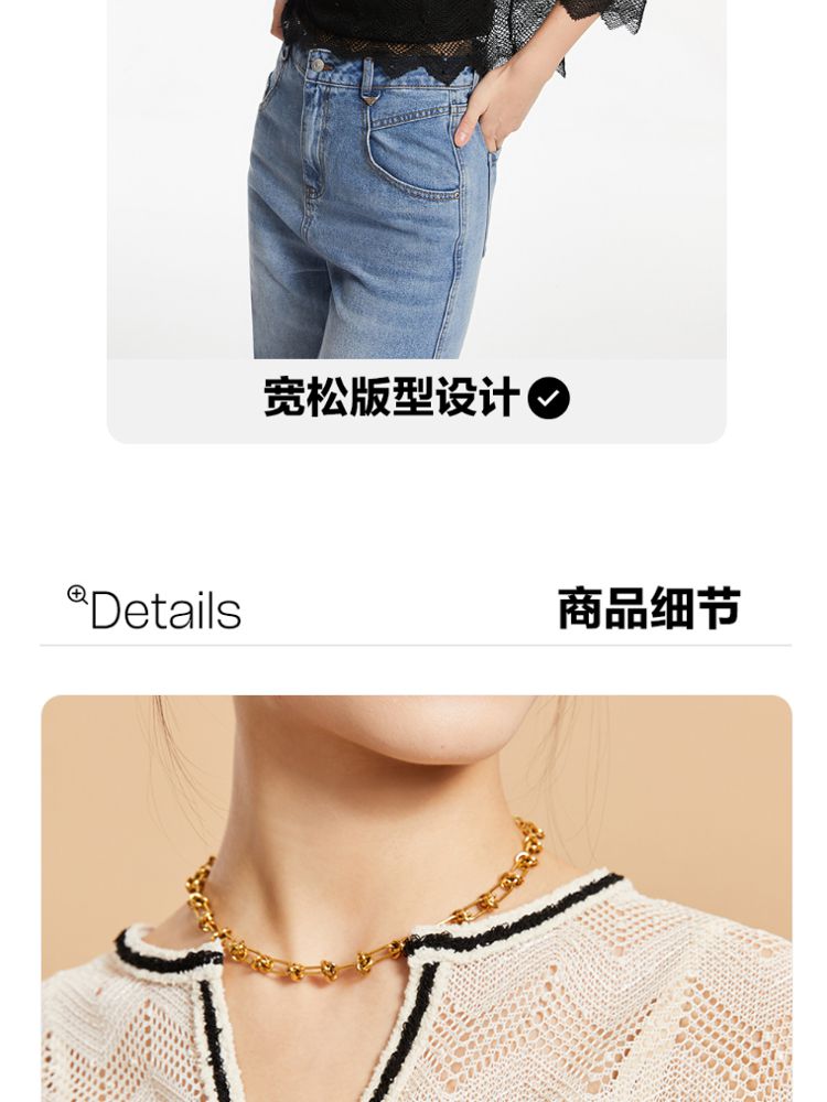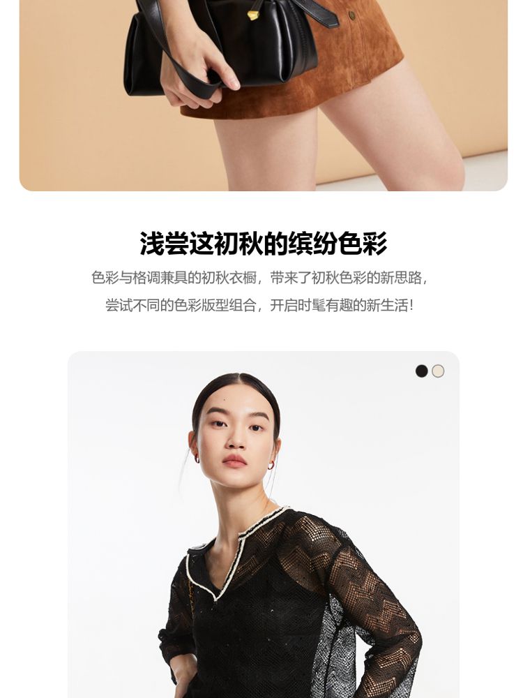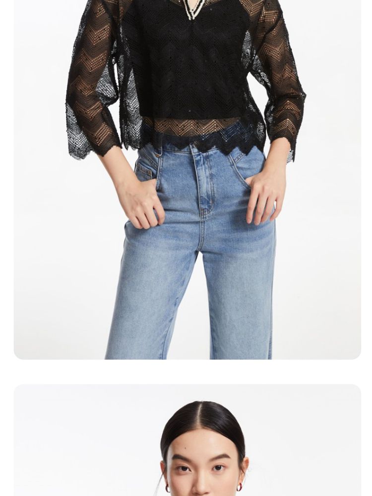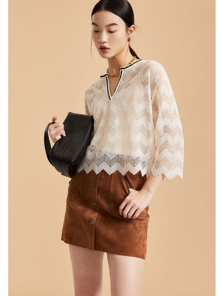 【秋专柜款】宽松圆领镂空编织七分袖优雅通勤T恤上衣女 331793