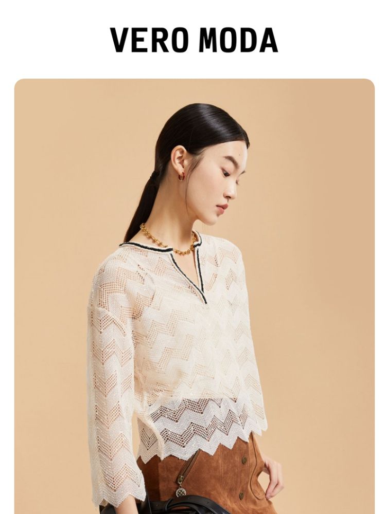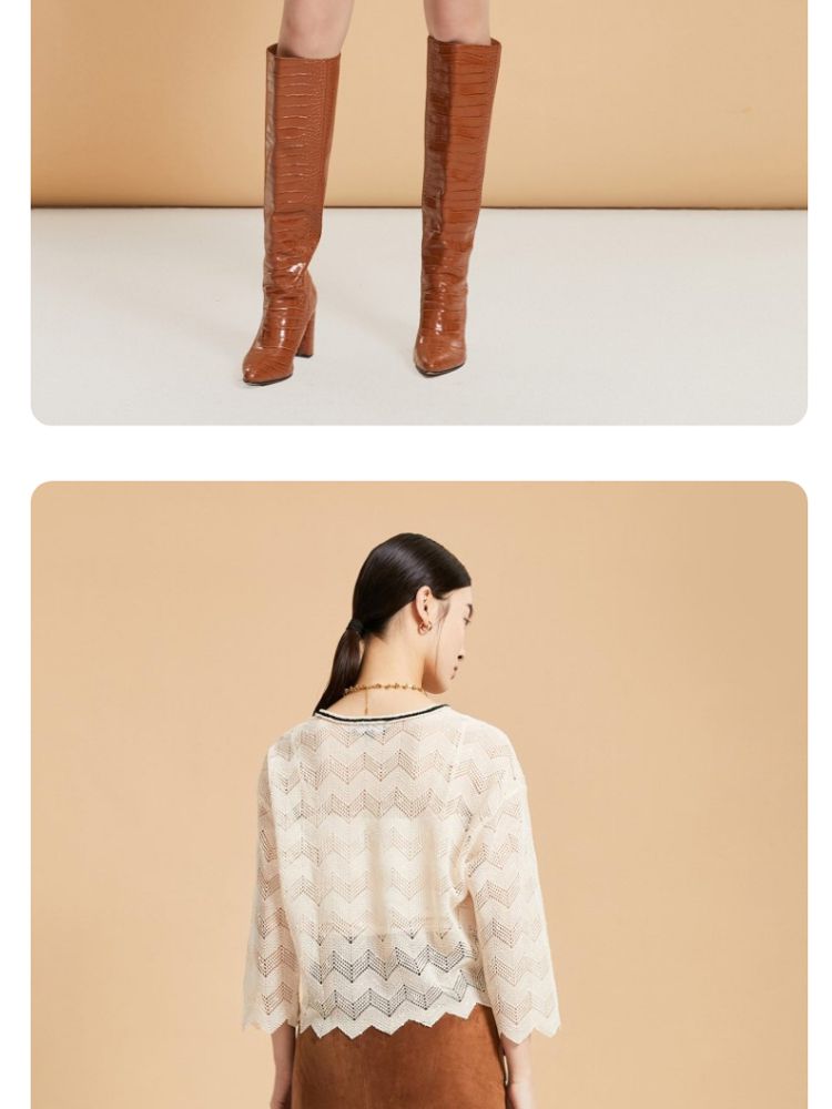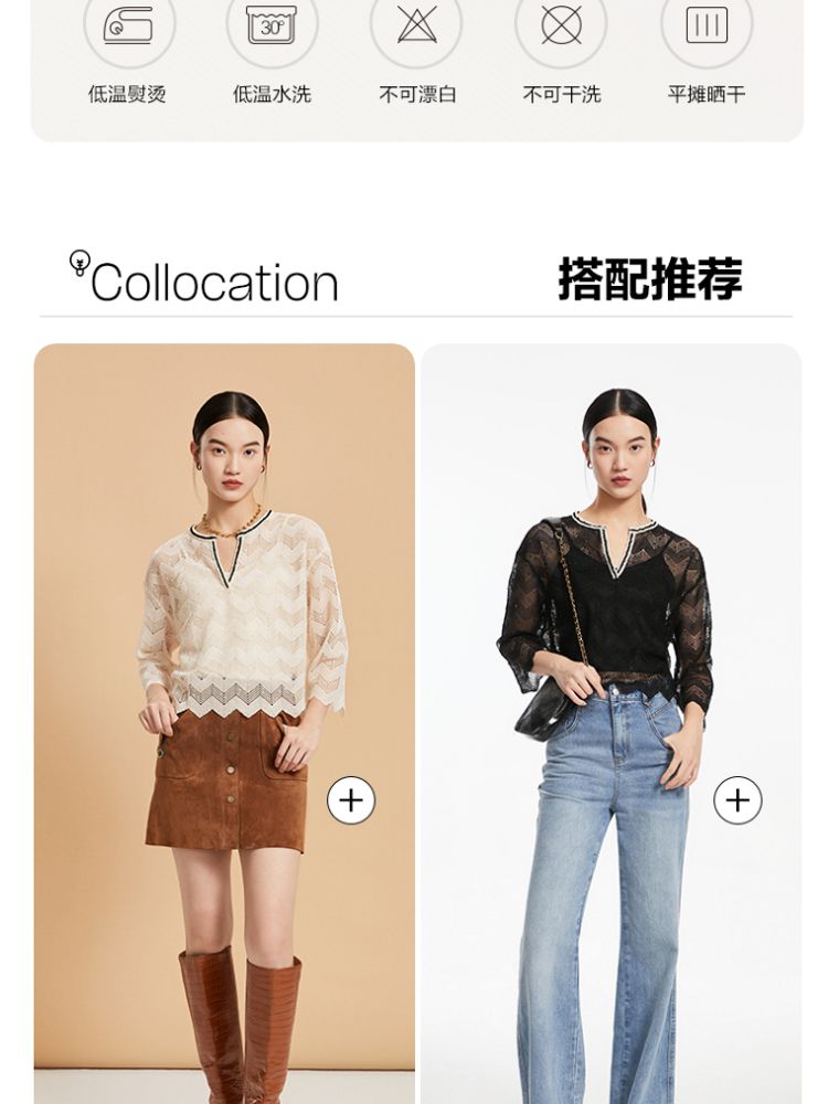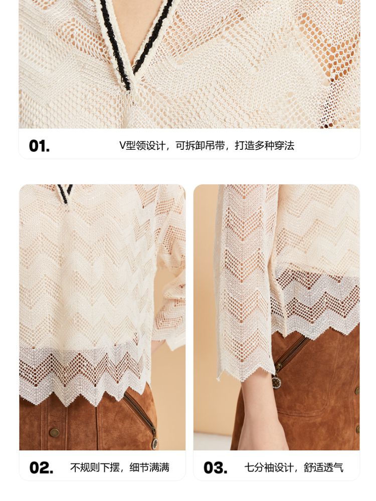 商品名称:【秋专柜款】宽松圆领镂空编织七分袖优雅通勤T恤上衣女 331793