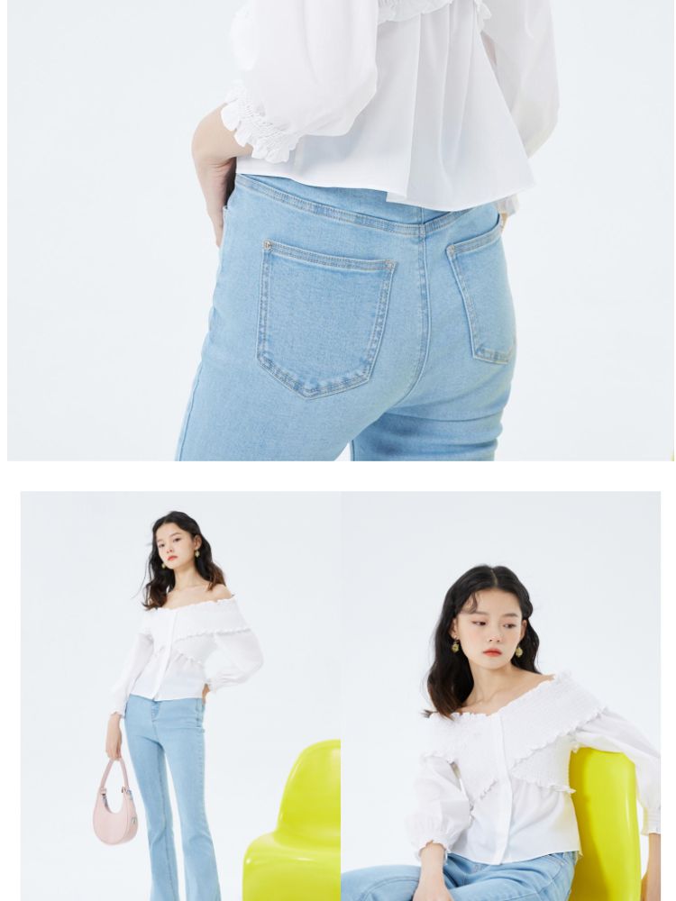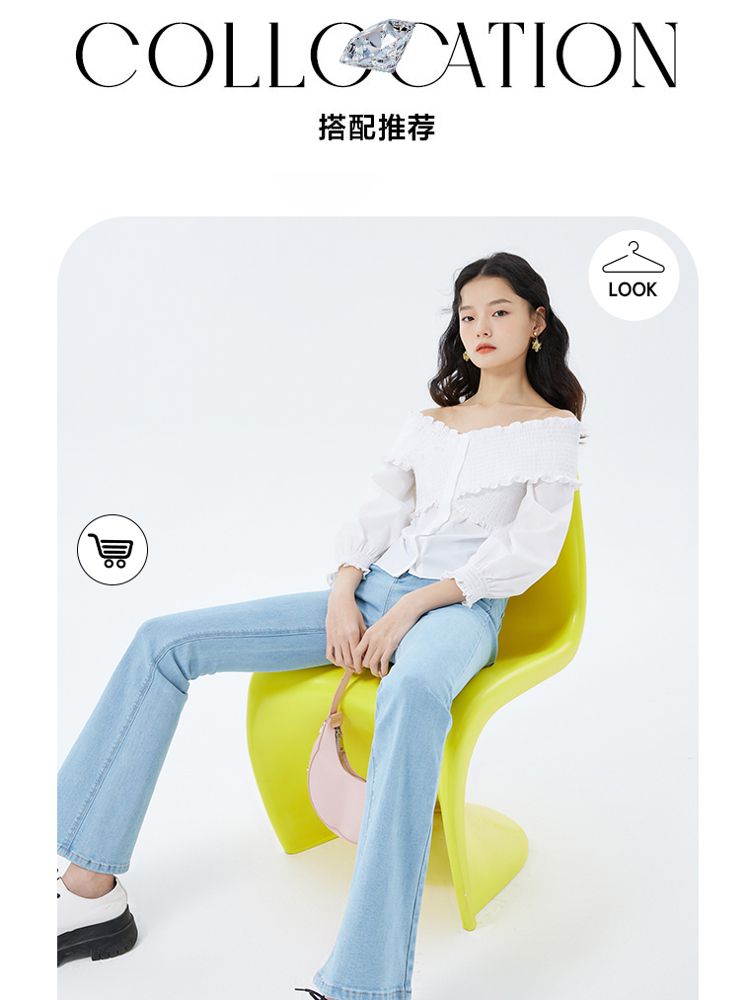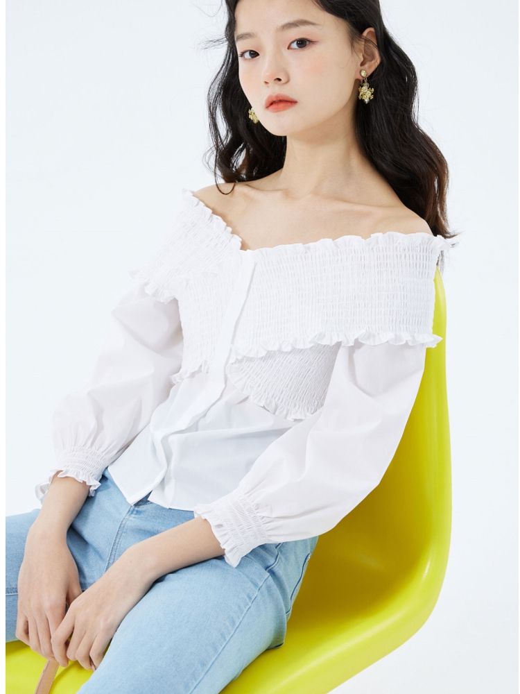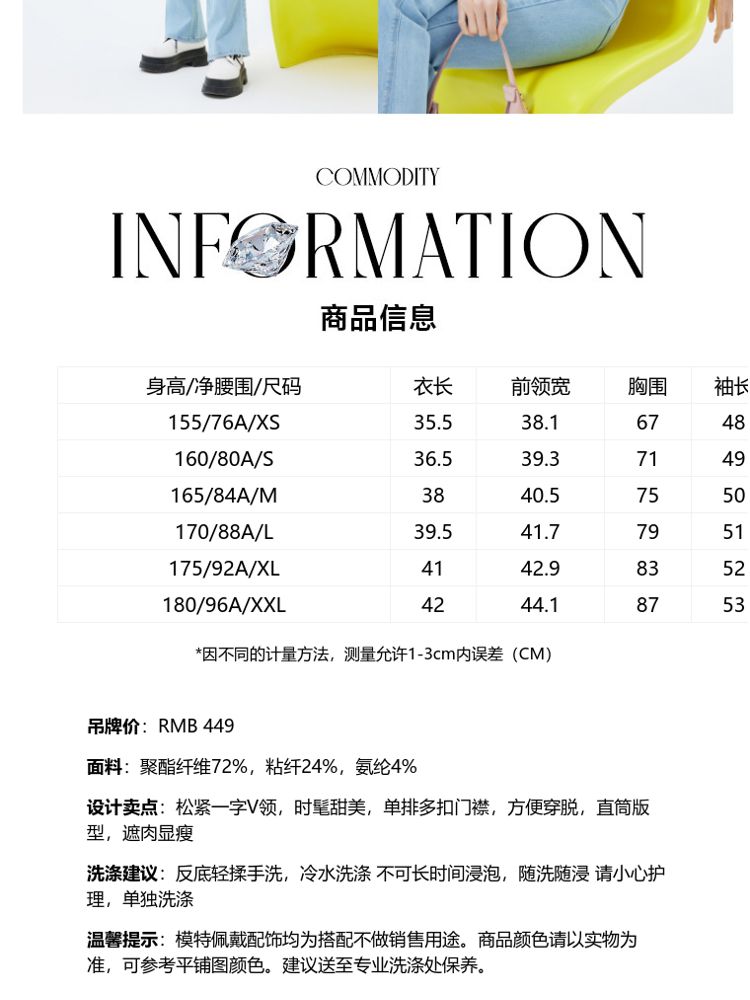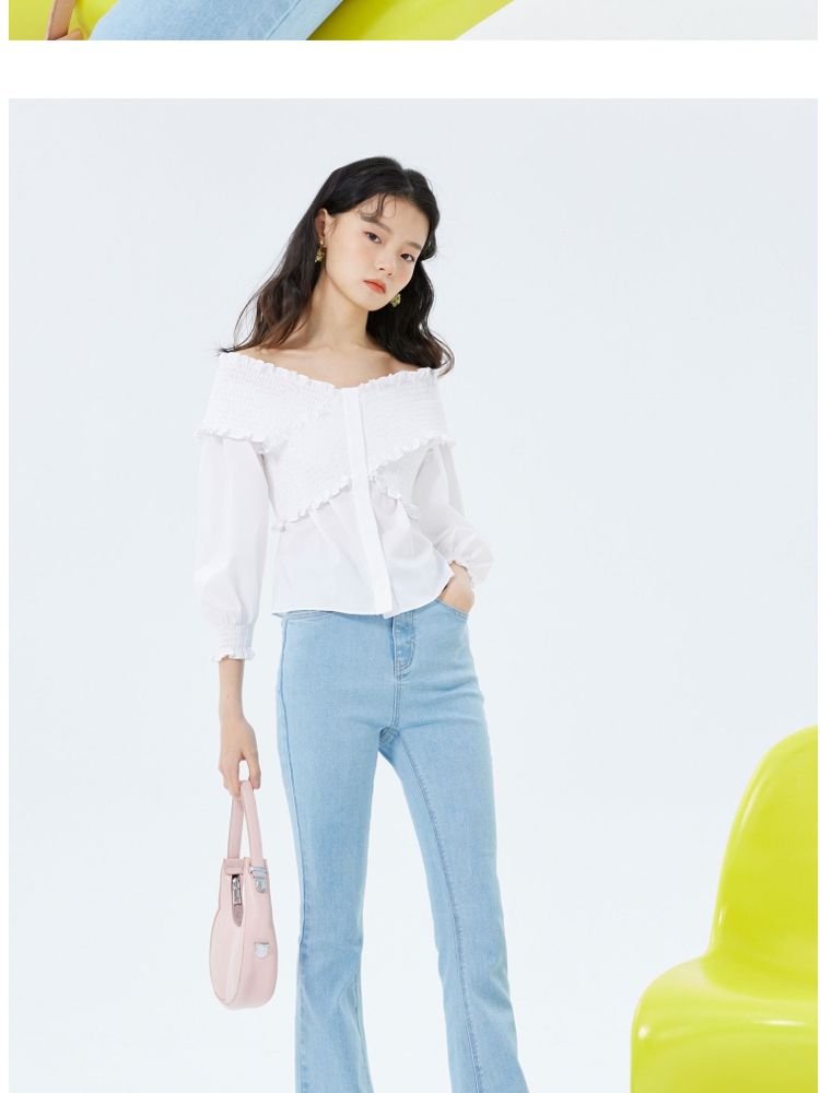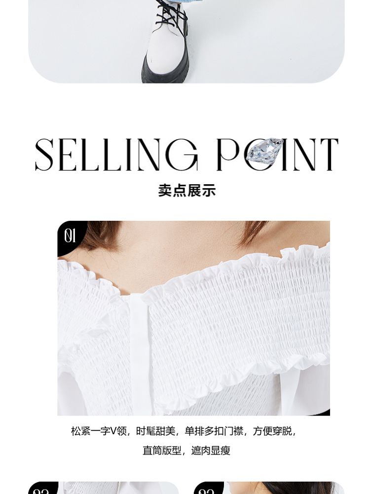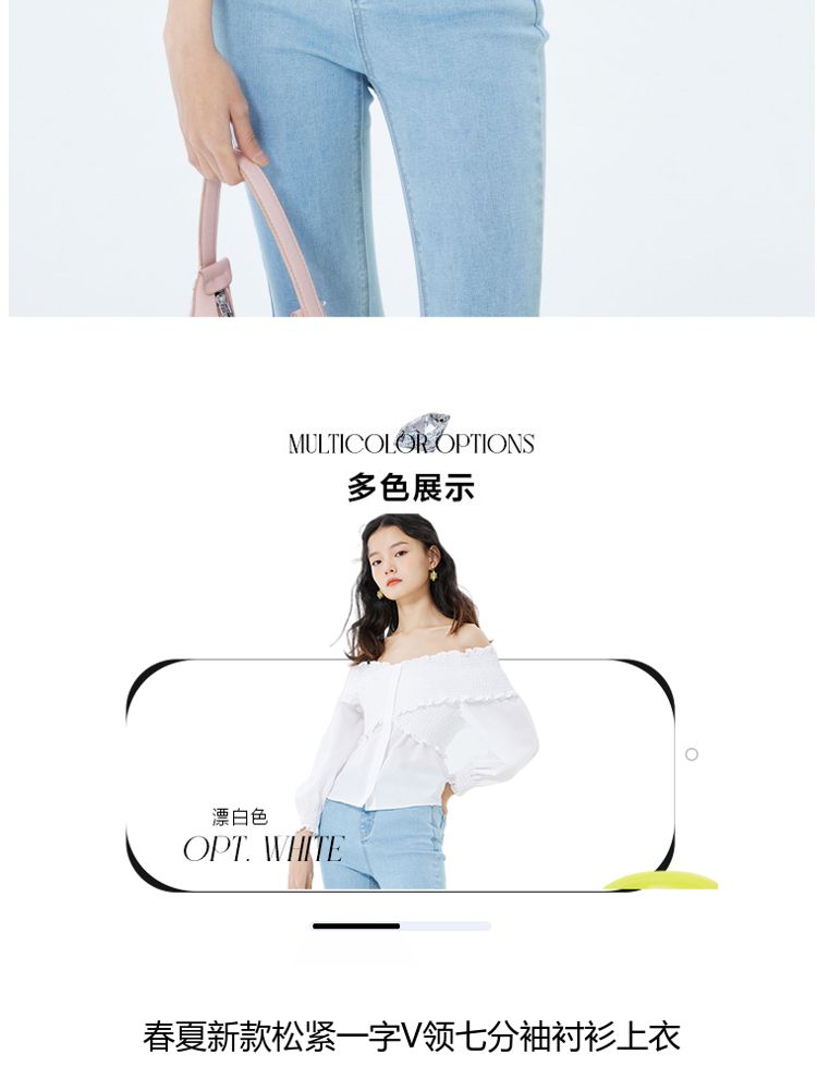 商品名称:【2024春夏季款】松紧一字V领七分袖衬衫上衣女 658065