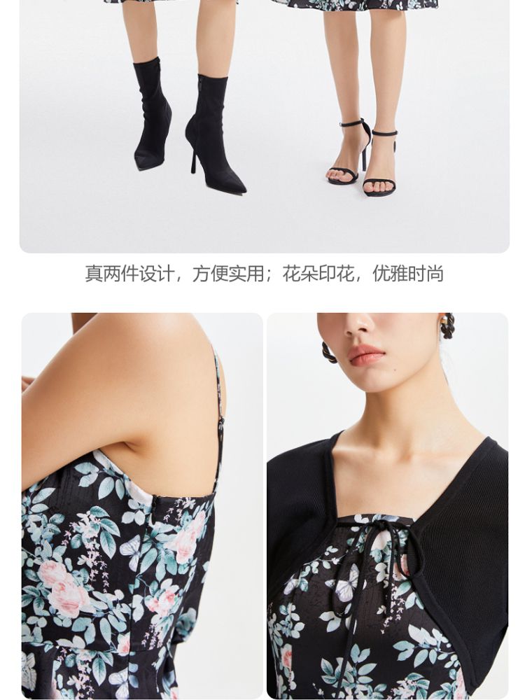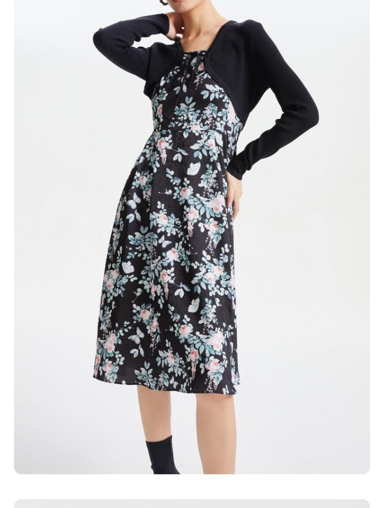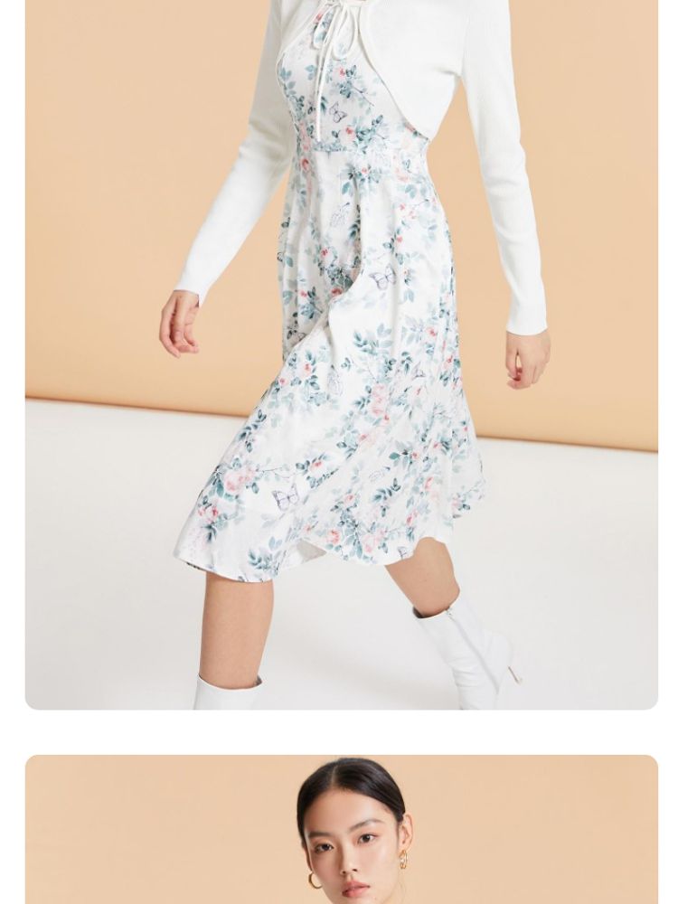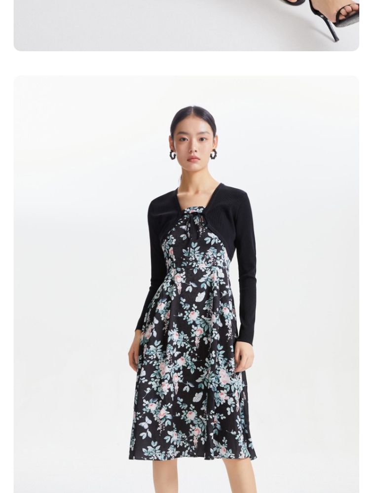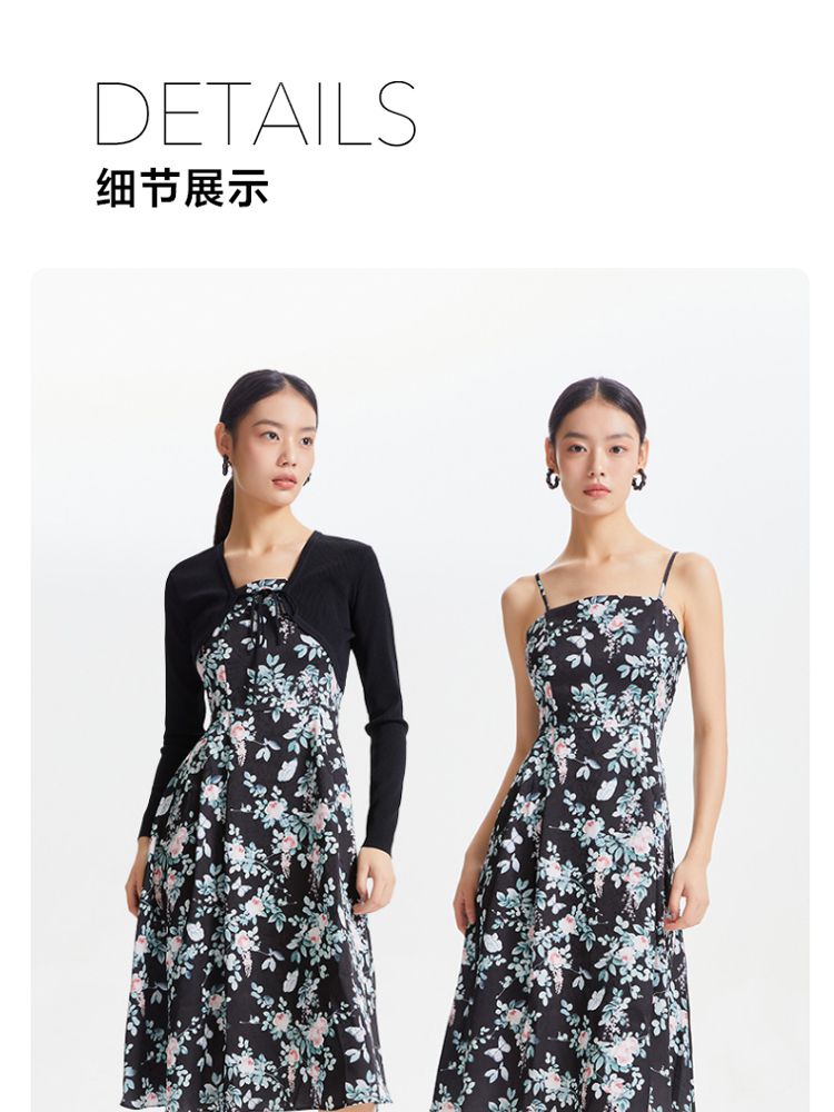 商品名称:【一衣多穿两件套】春秋专柜款坑条吊带针织衫连衣裙套装 748113