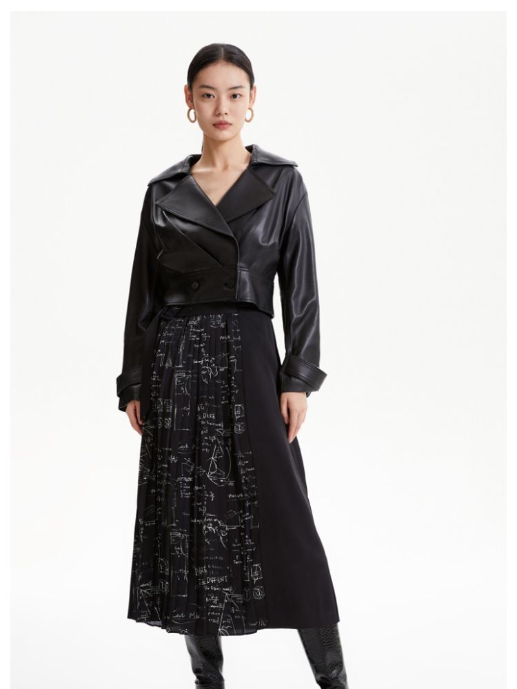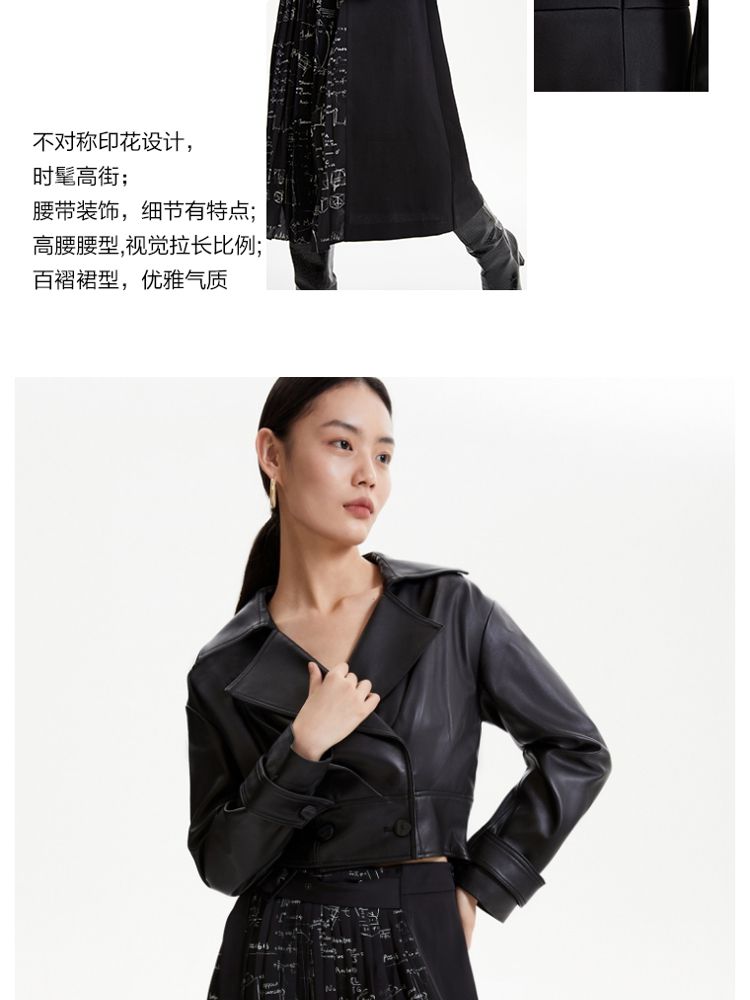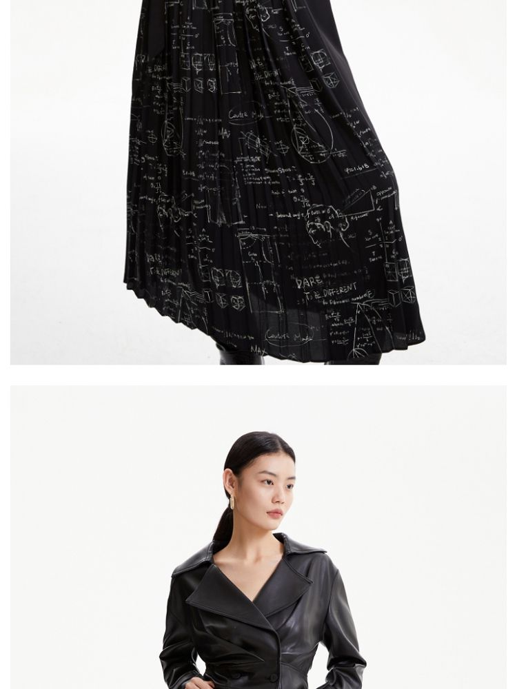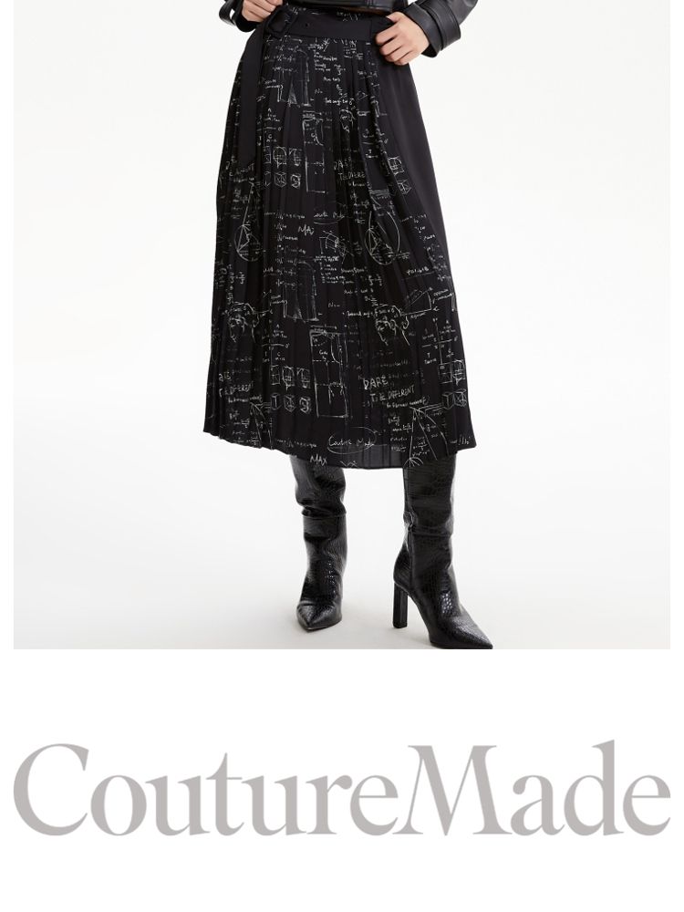 商品名称:【春秋专柜款】优雅气质通勤印花高腰百褶半裙女 672721