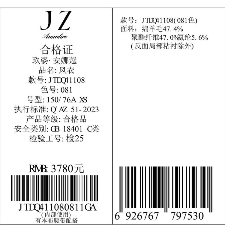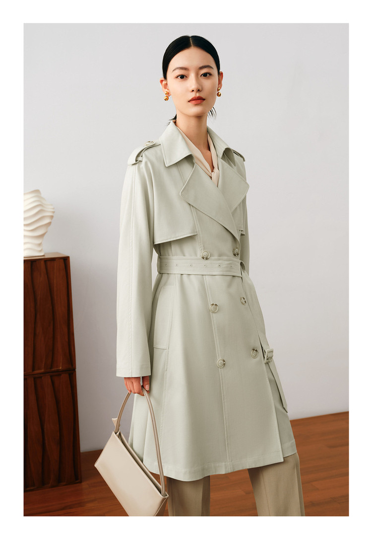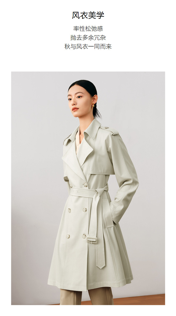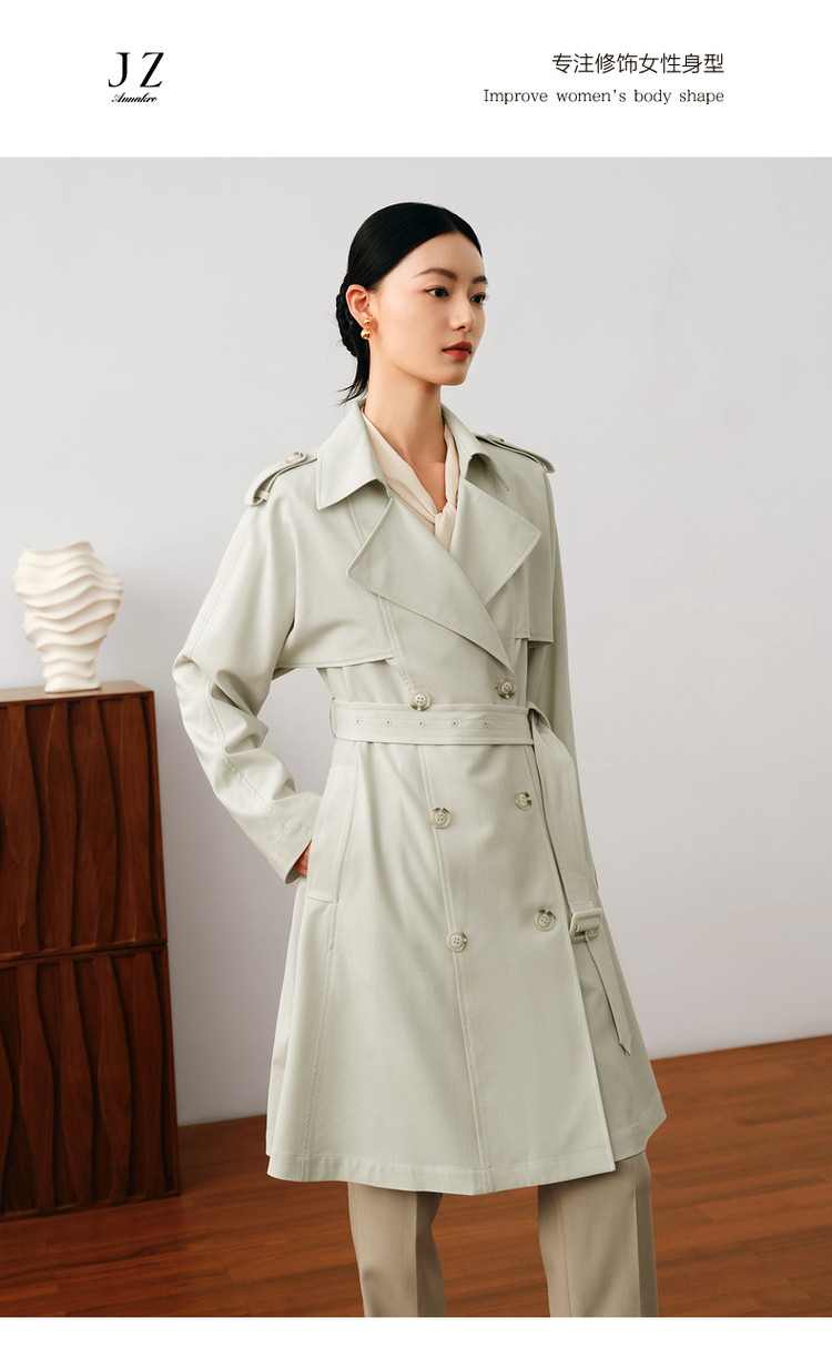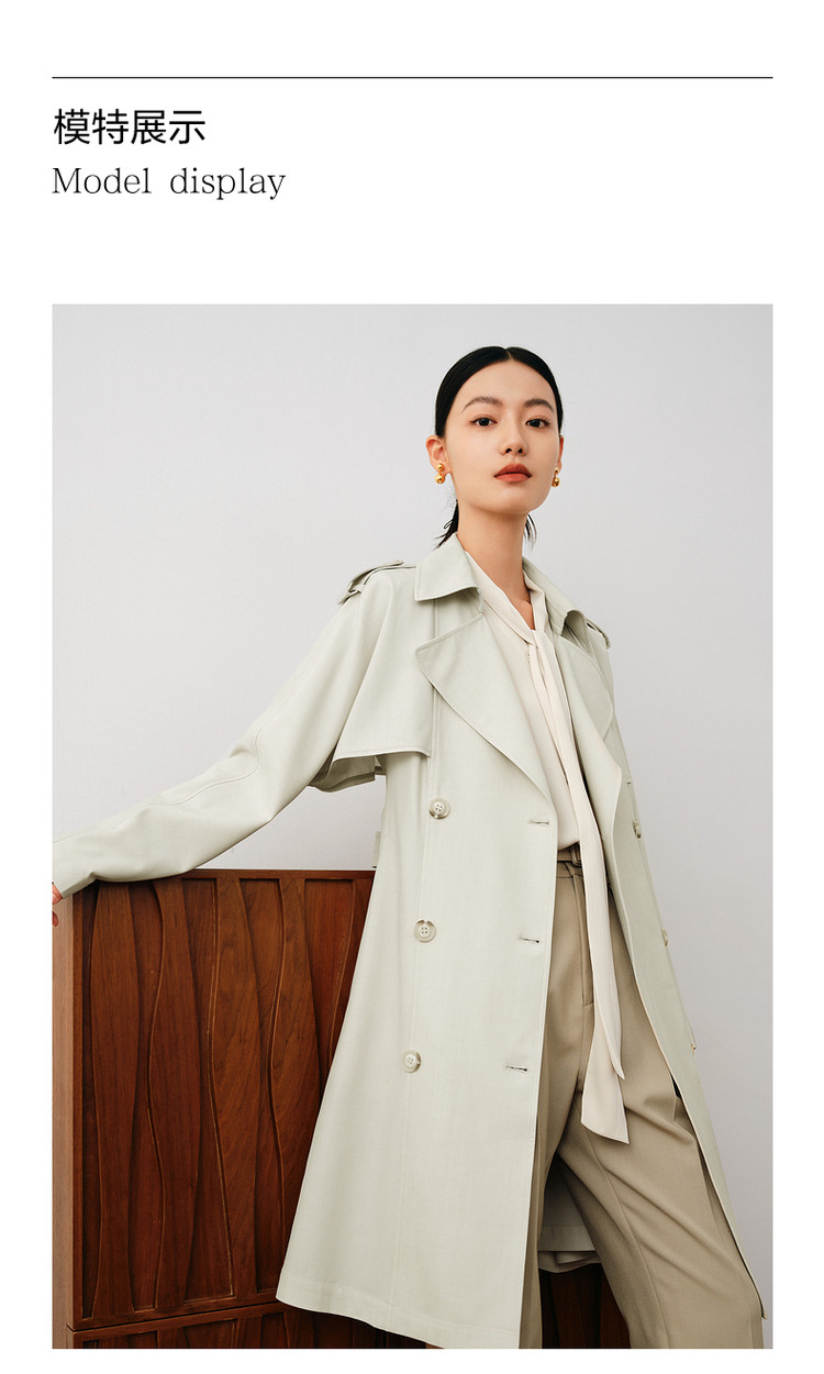 商品名称:玖姿旗下安娜蔻系列商务通勤OL驳领羊毛混纺长款风衣女秋季 545868