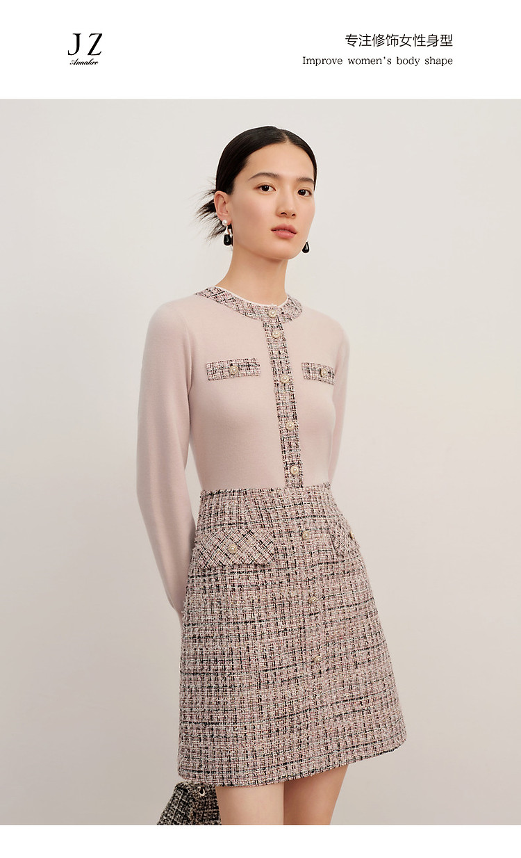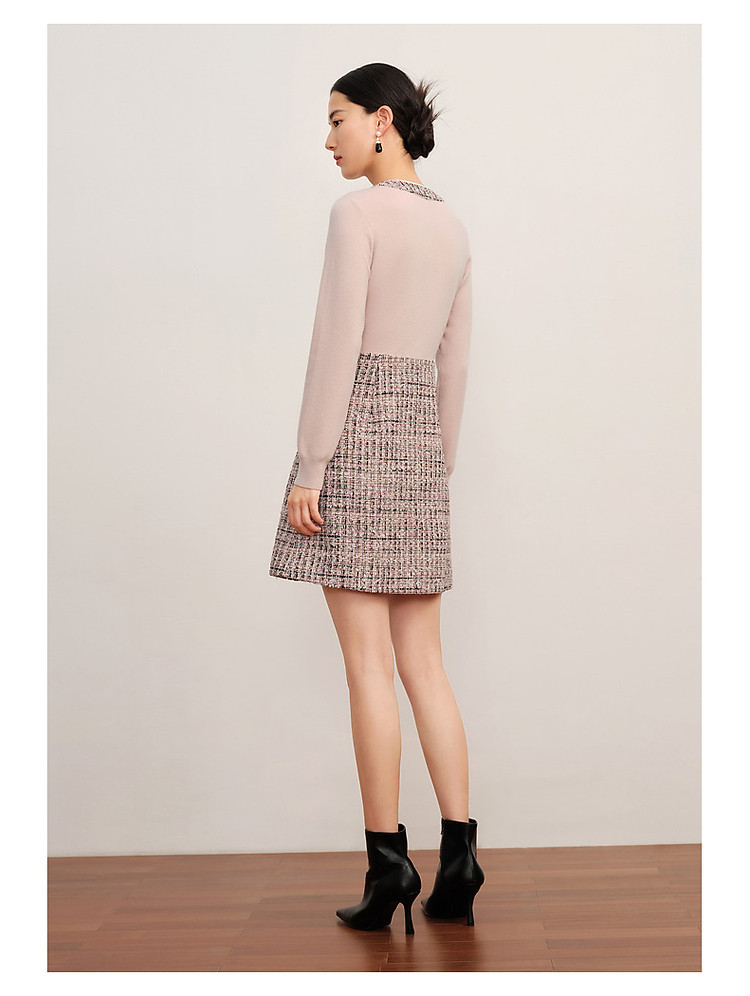 玖姿旗下安娜蔻系列小香风粗花呢羊毛混纺针织连衣裙女冬季 239052