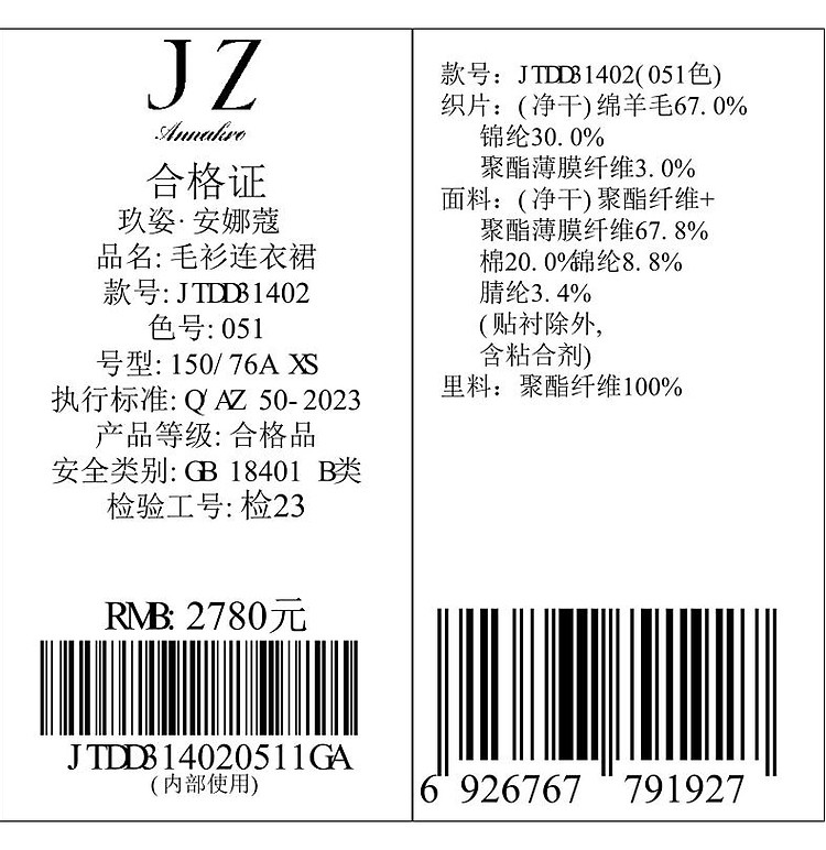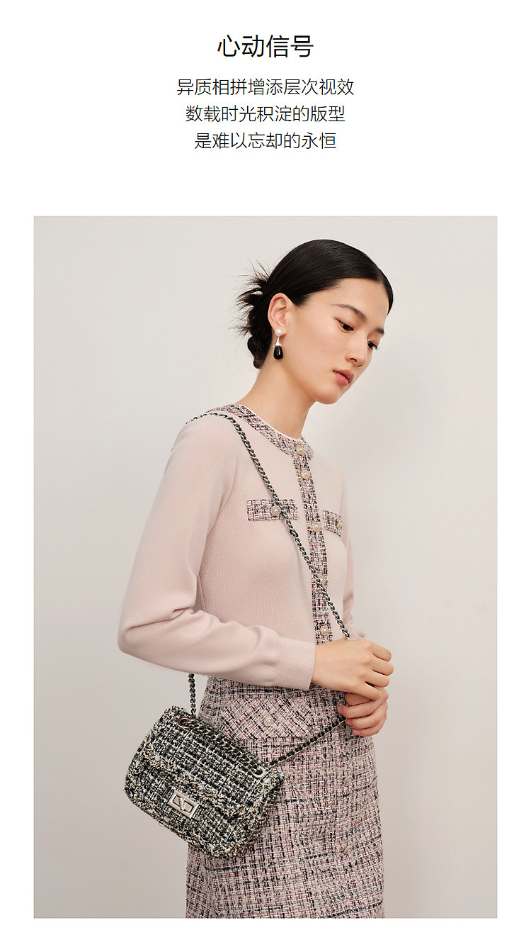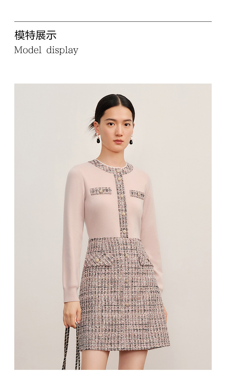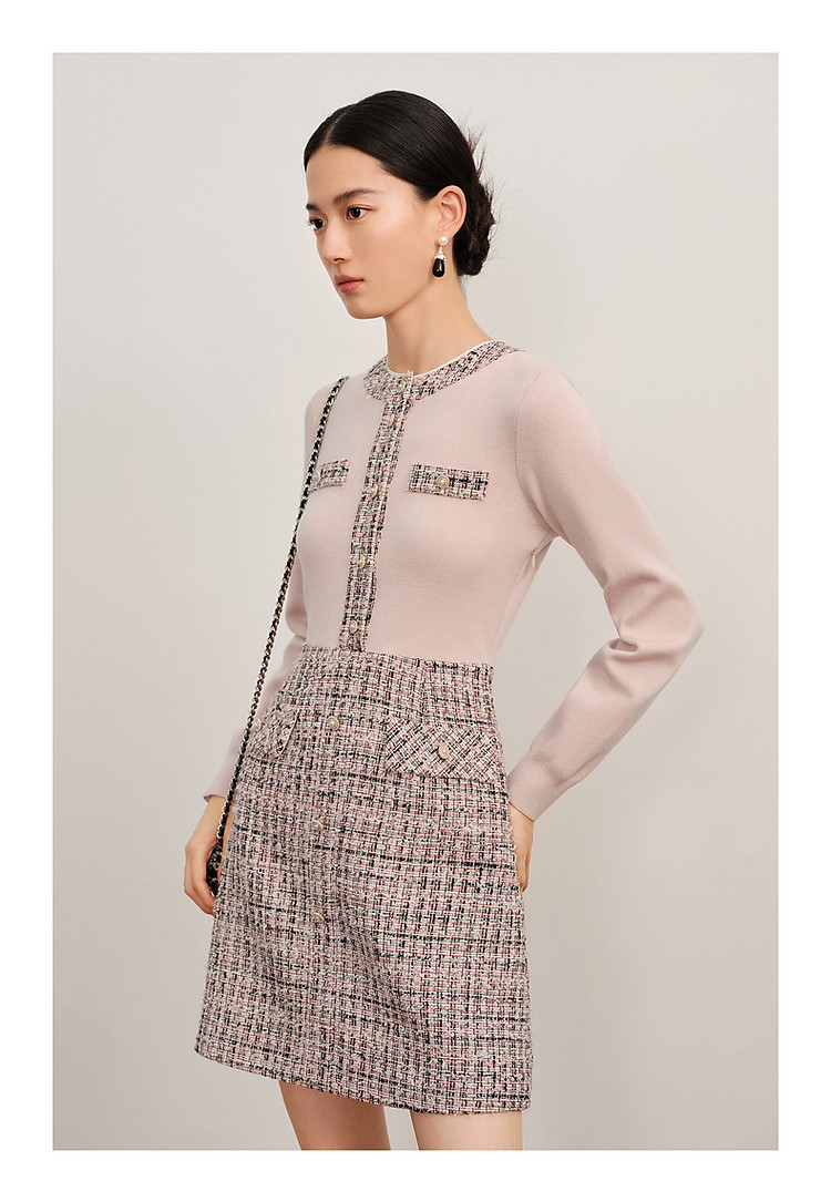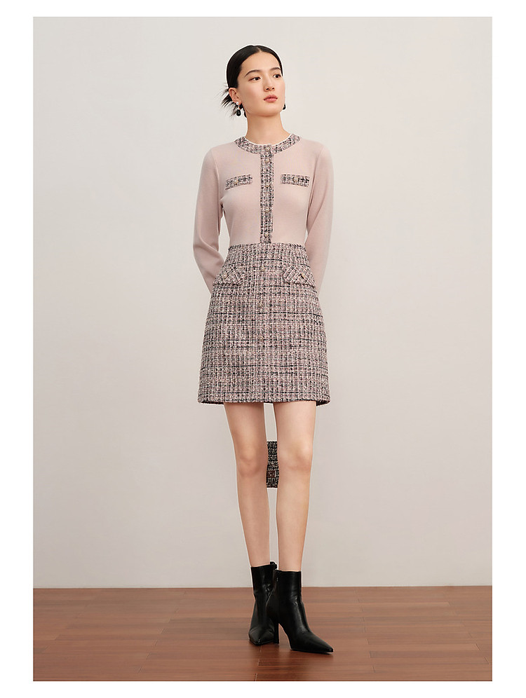 商品名称:玖姿旗下安娜蔻系列小香风粗花呢羊毛混纺针织连衣裙女冬季 239052