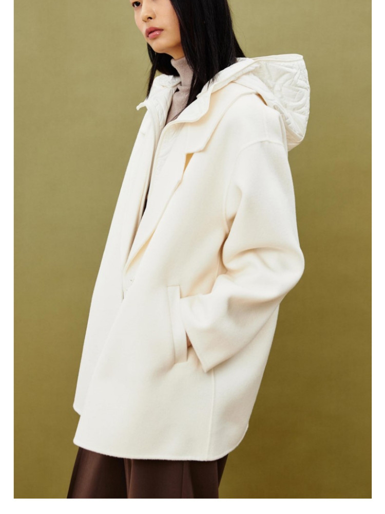 商品名称:【绵羊毛100%可拆卸内胆】春季专柜气质毛呢外套 663313