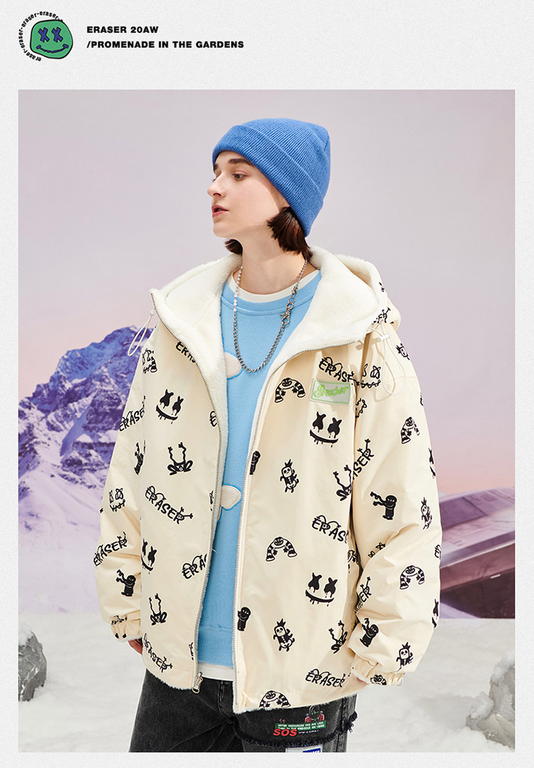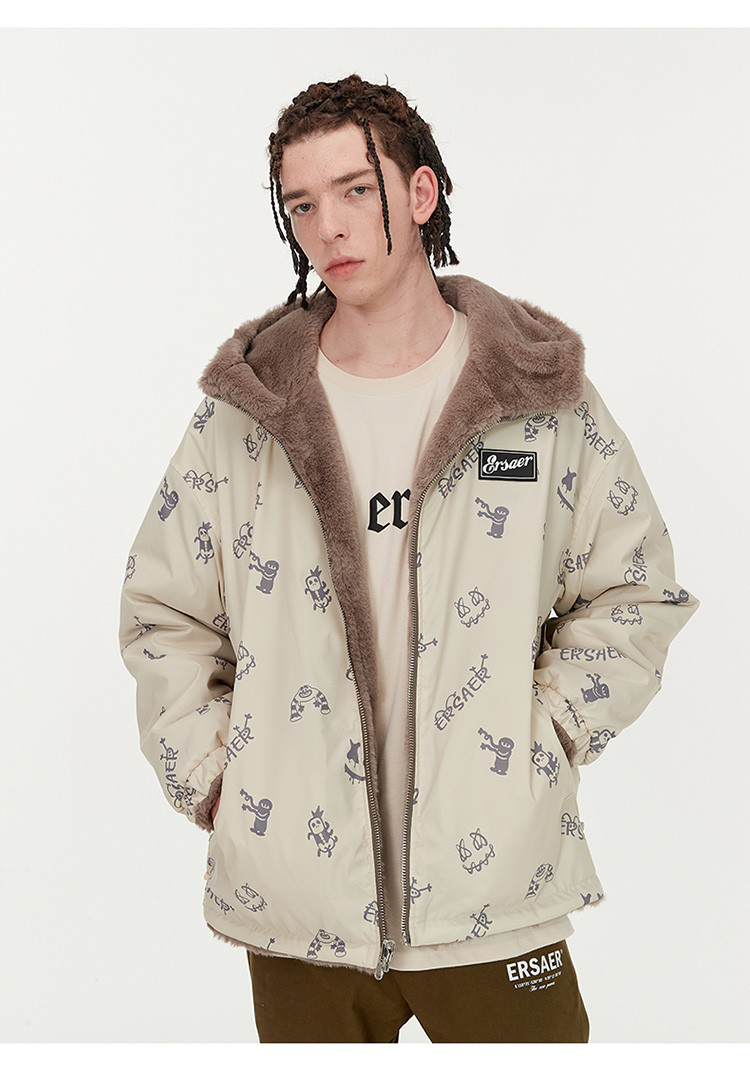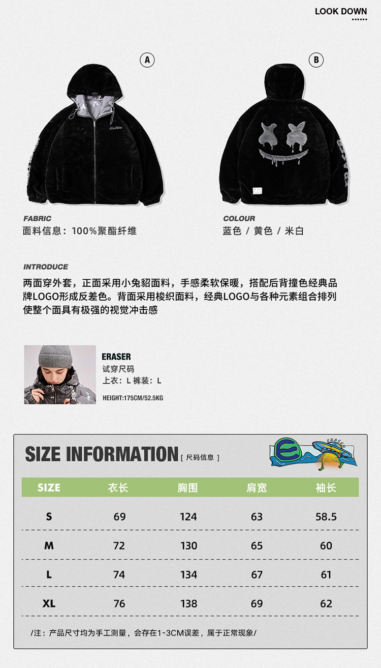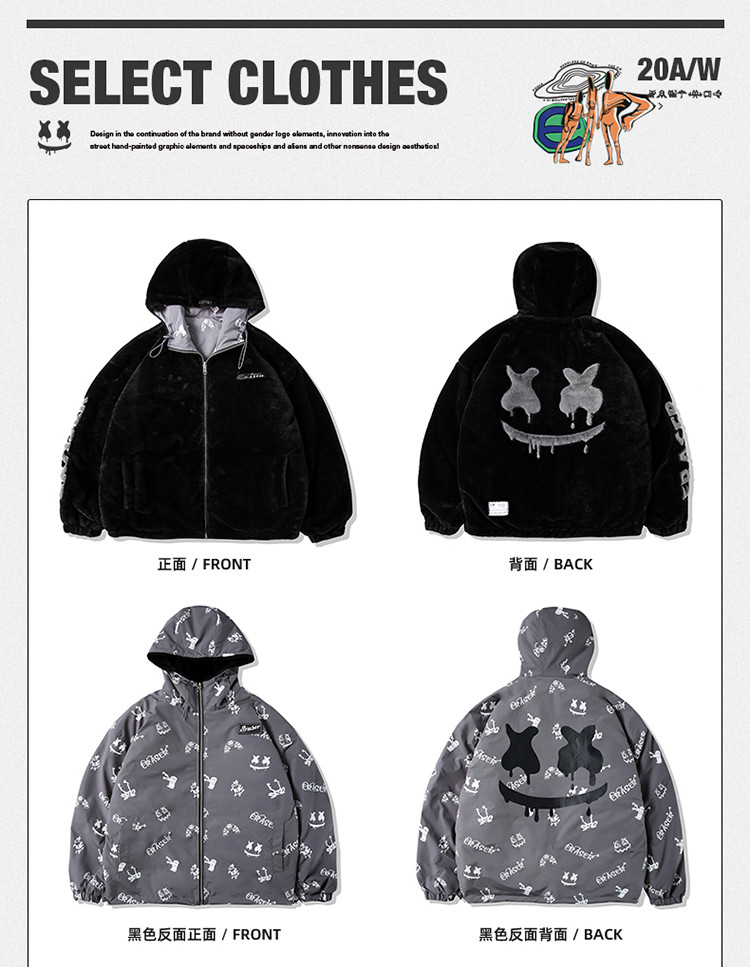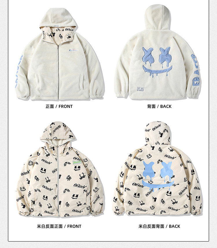 商品名称:【双面穿】外套秋冬加厚保暖潮冬季棉服国潮休闲外套仿羊羔毛外套 799895