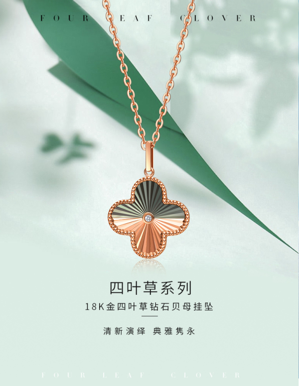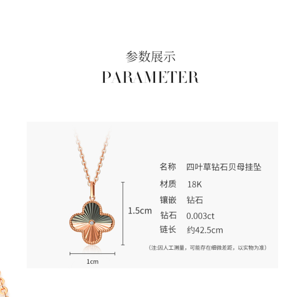 商品名称:ALLOVE 18K金四叶草钻石贝母挂坠(送银链)GHD00978