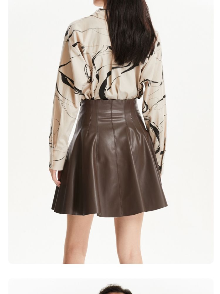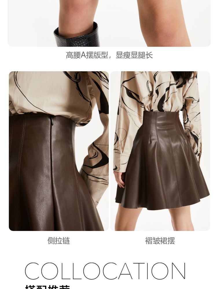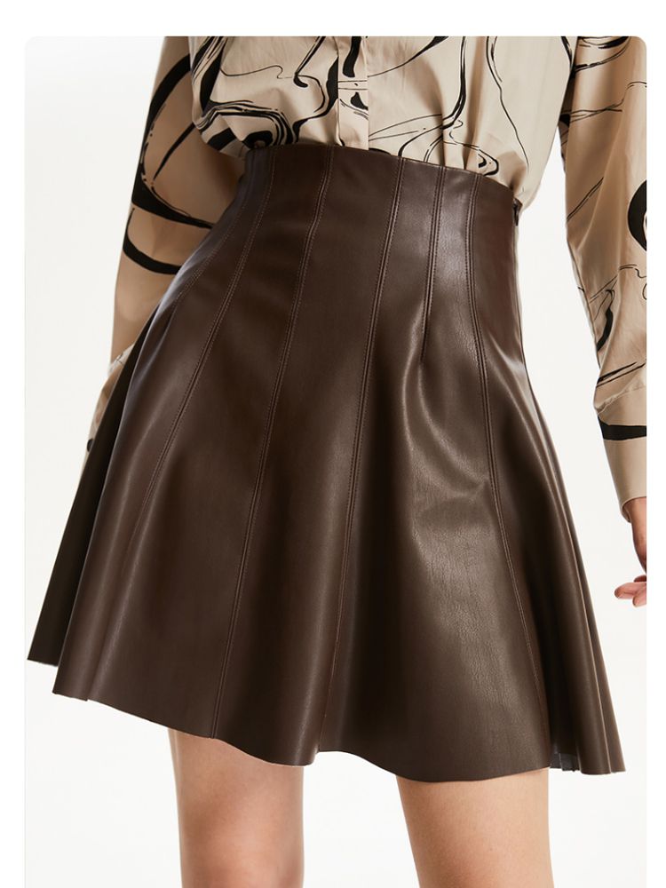 商品名称:半身裙高腰A摆pu褶皱简约通勤百搭 022737