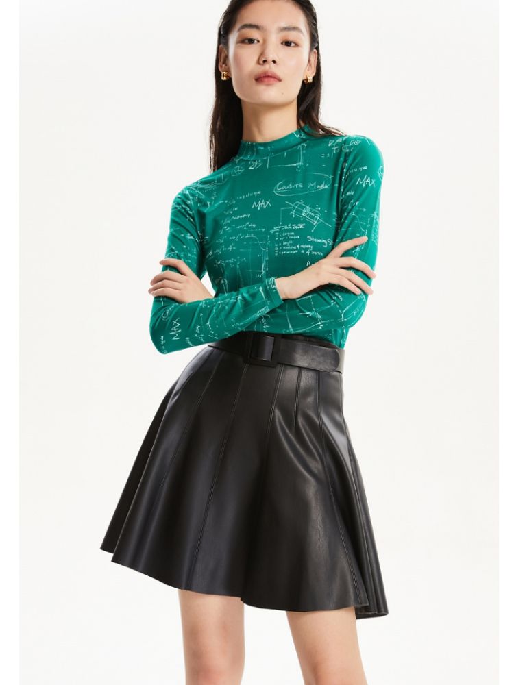 半身裙高腰A摆pu褶皱简约通勤百搭 022737
