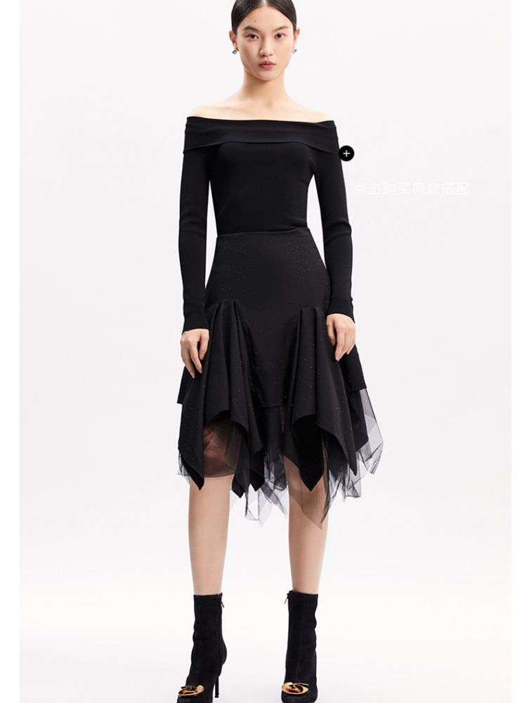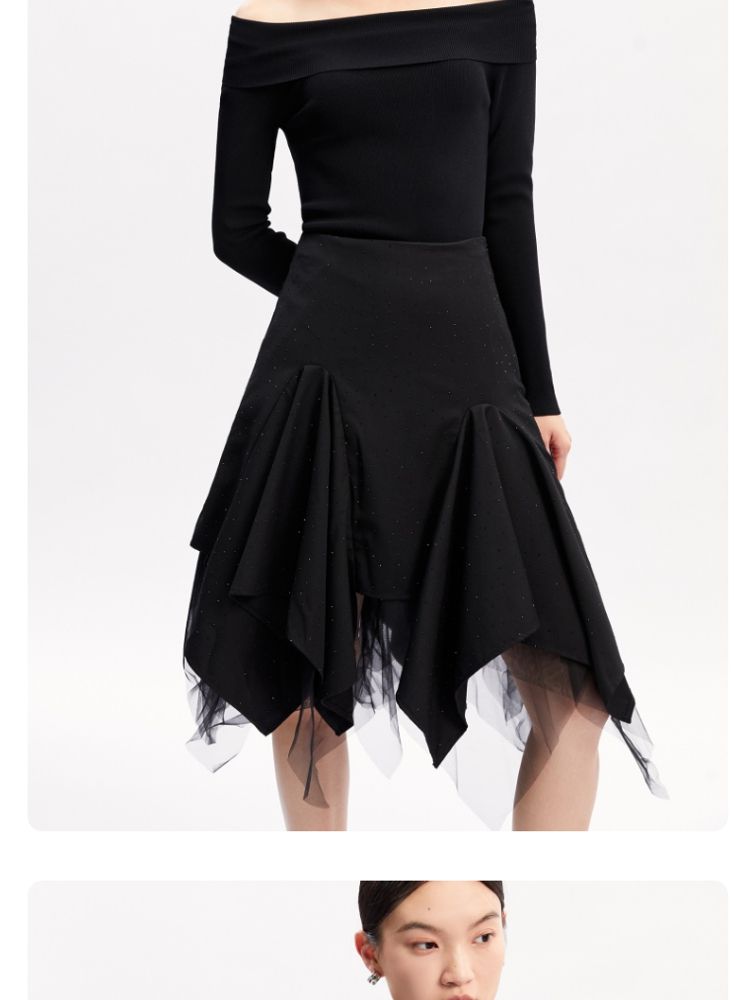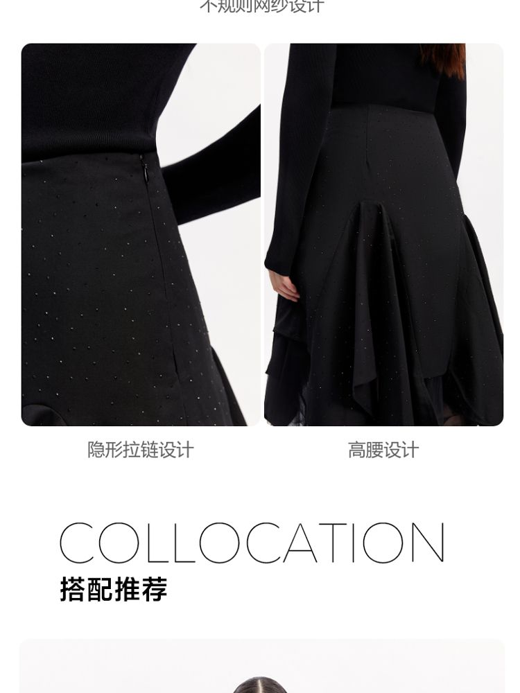 商品名称:【春夏专柜款】高腰网纱拼接设计优雅浪漫半身裙女气质百搭时尚 254609