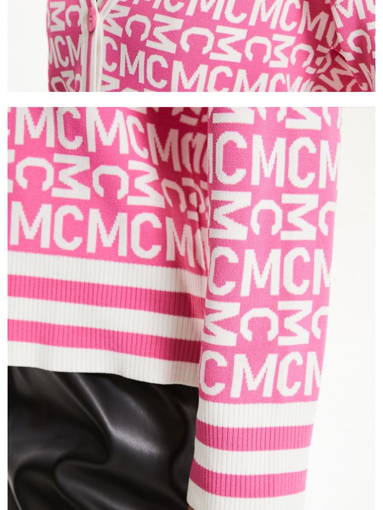 宽松V领撞色字母提花休闲针织开衫气质百搭时尚春夏 142865