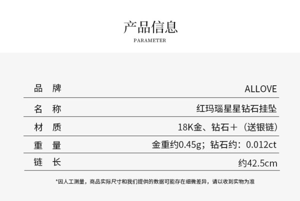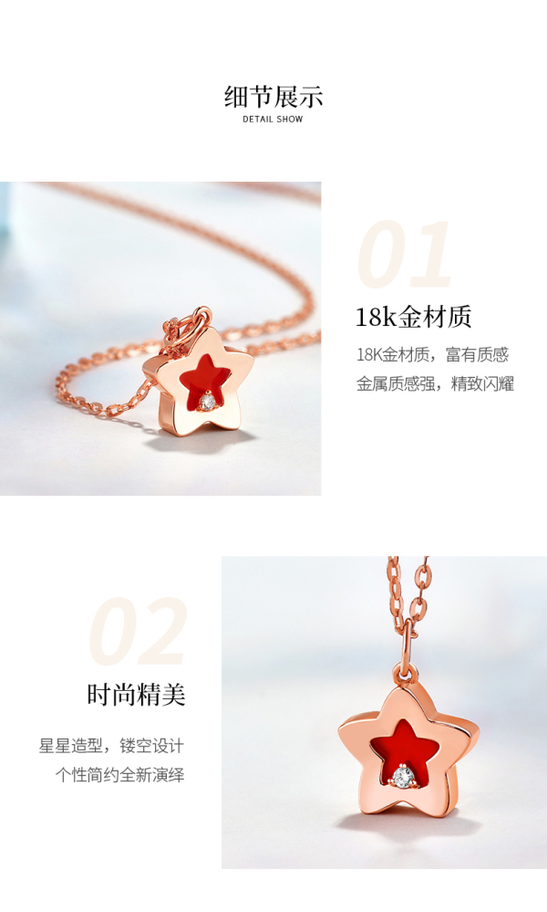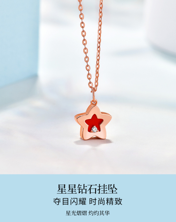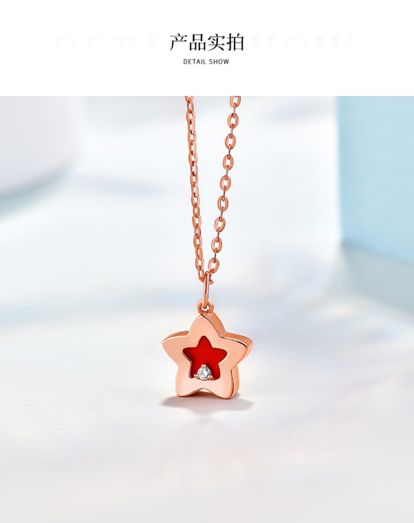 商品名称:ALLOVE 18K金红玛瑙星星钻石挂坠 (送银链)FP04606