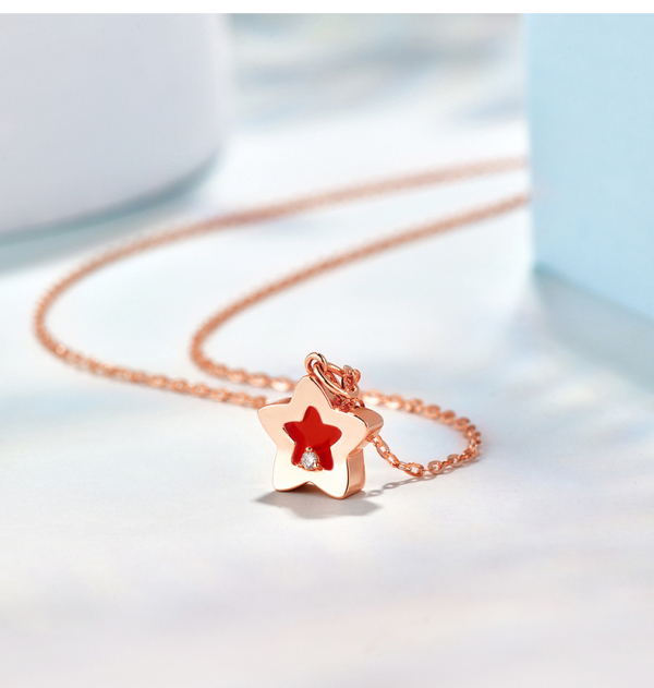 ALLOVE 18K金红玛瑙星星钻石挂坠 (送银链)FP04606