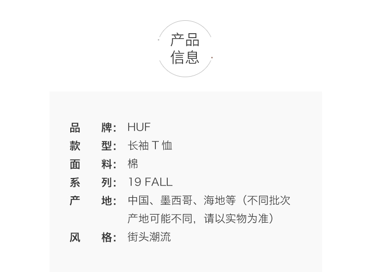 商品名称:HUF 19FA BONDAGE LS TEE TS00808-BLACK
