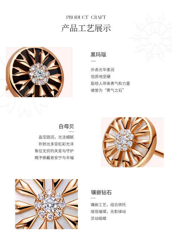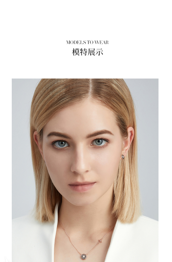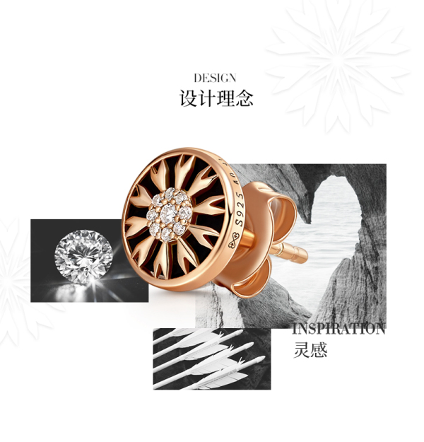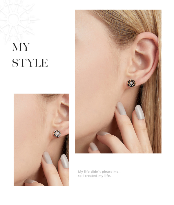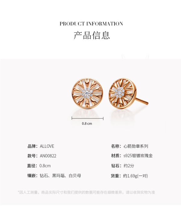 商品名称:ALLOVE S925黑玛瑙/白贝心箭勋章钻石耳钉AE00822