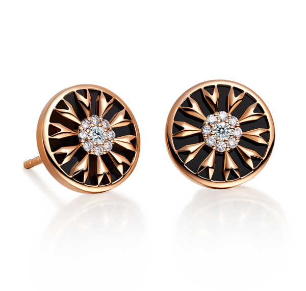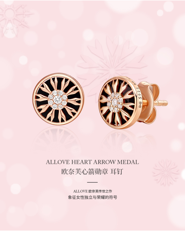 ALLOVE S925黑玛瑙/白贝心箭勋章钻石耳钉AE00822