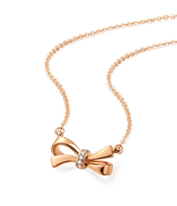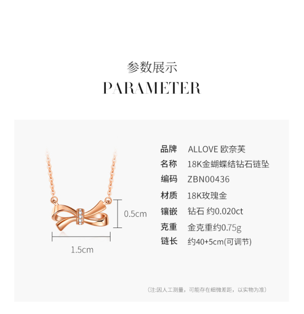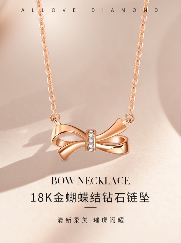 商品名称:ALLOVE 18K金蝴蝶结钻石链坠GHD01057