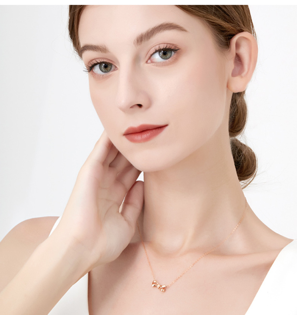 ALLOVE 18K金蝴蝶结钻石链坠GHD01057