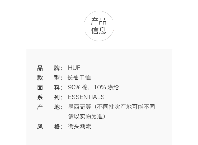 商品名称:HUF ESSENTIALS TT LS TEE TS00506-GYHTR