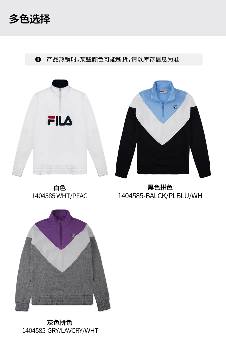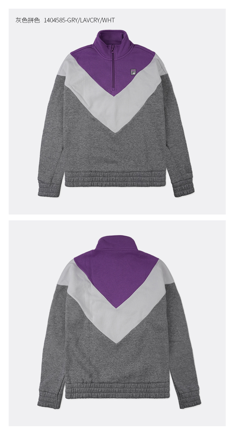 商品名称:FILA 1/4拉链套头卫衣 1404585-GRY/LAVCRY/WHT