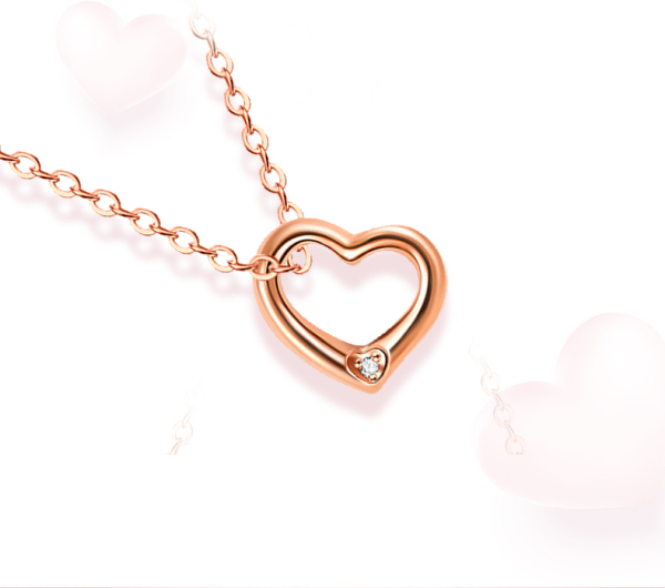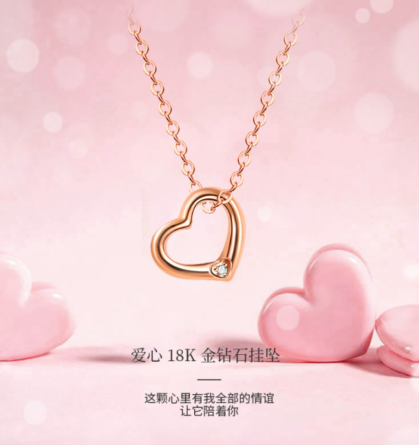 5D18K心形钻石挂坠 (送银链)