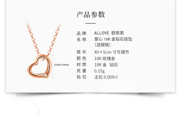 商品名称:ALLOVE欧奈芙 5D18K心形钻石挂坠 (送银链)FP04617