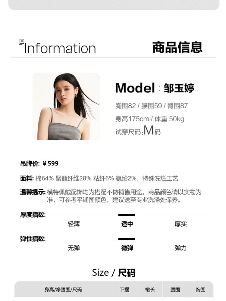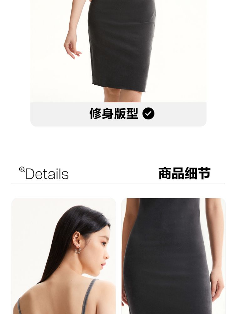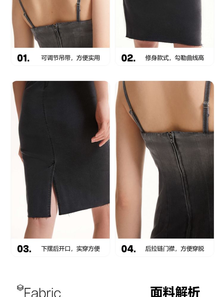 商品名称:【可调节吊带】专柜款修身显瘦后拉链牛仔连衣裙 245137
