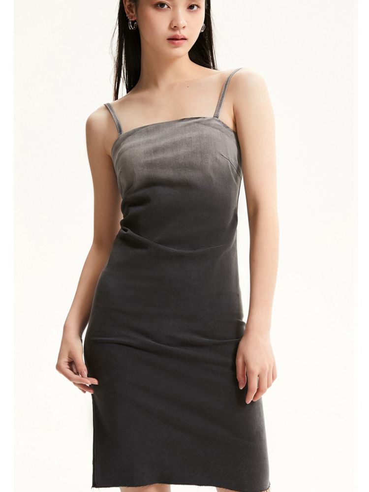 【可调节吊带】专柜款修身显瘦后拉链牛仔连衣裙 245137