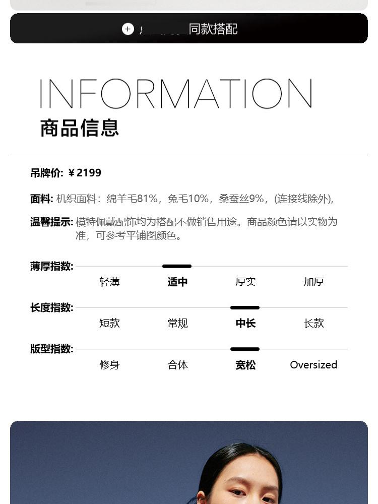 商品名称:【美拉德】通勤收腰含羊毛毛呢大衣外套女 899857