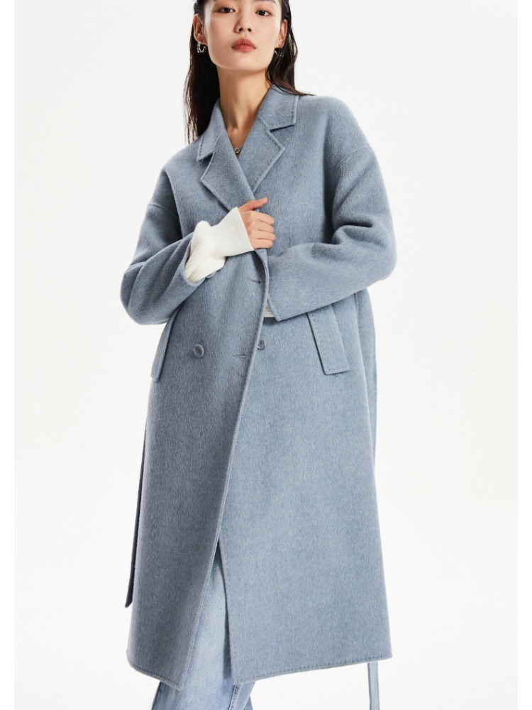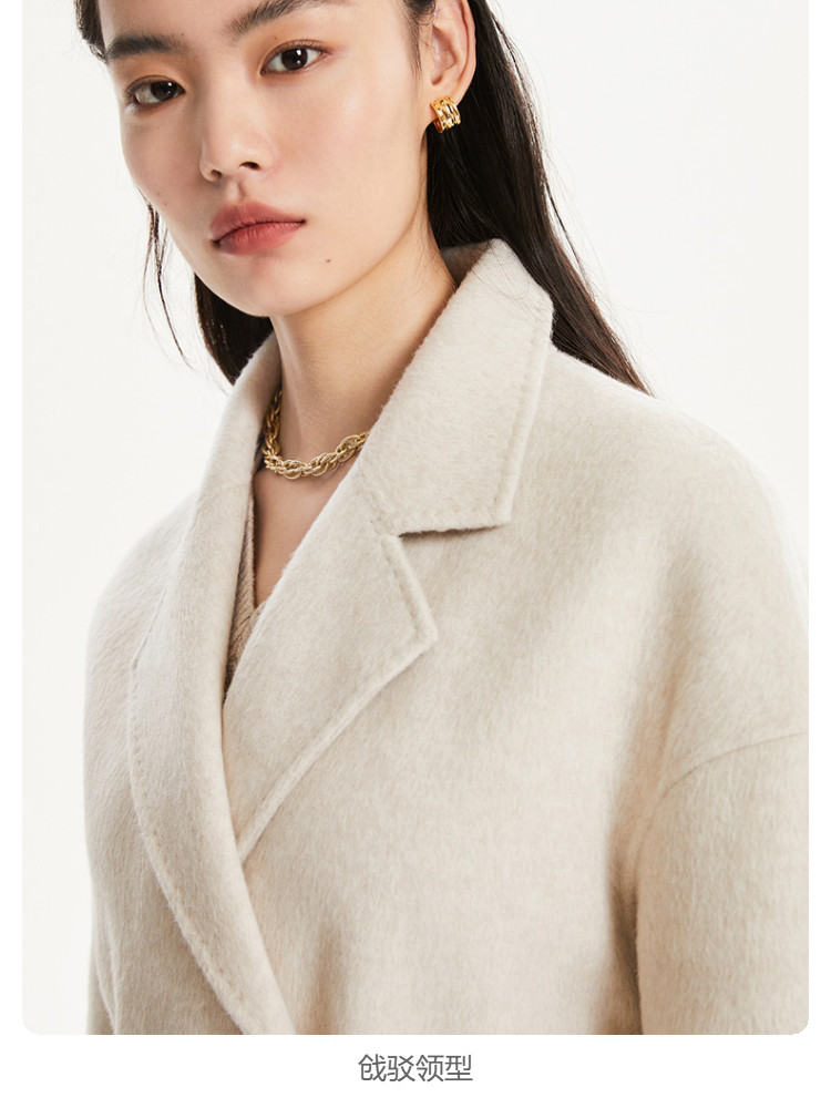 冬季全绵羊毛气质通勤款中长款毛呢外套大衣小个子 816667