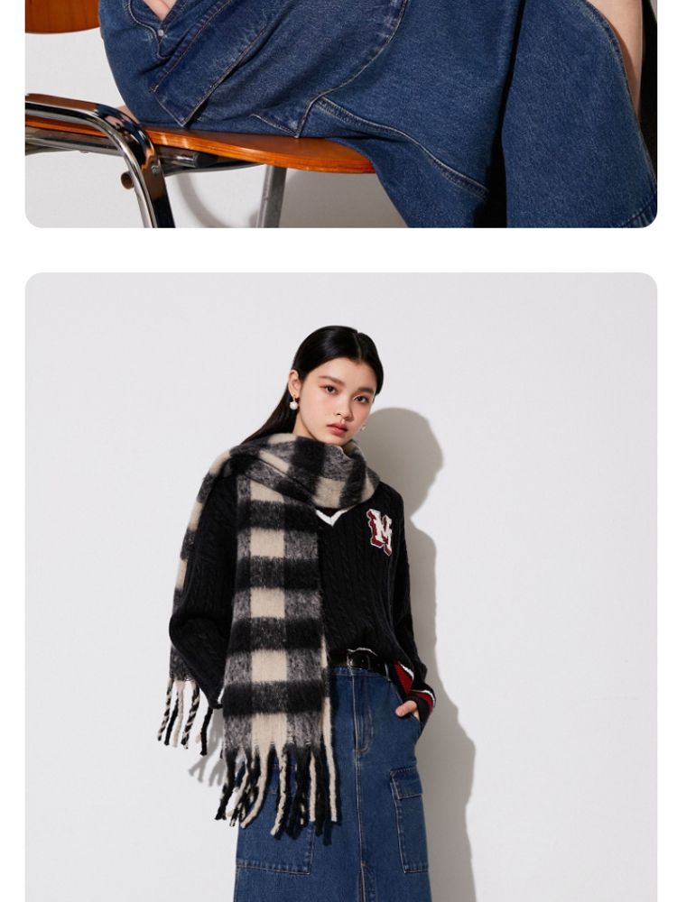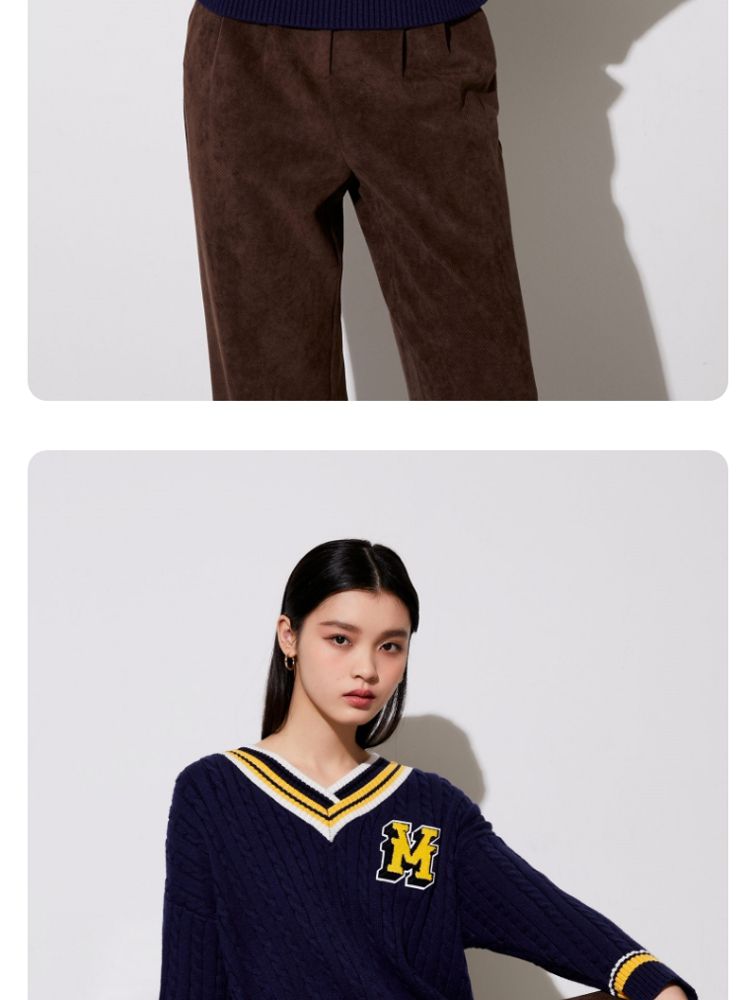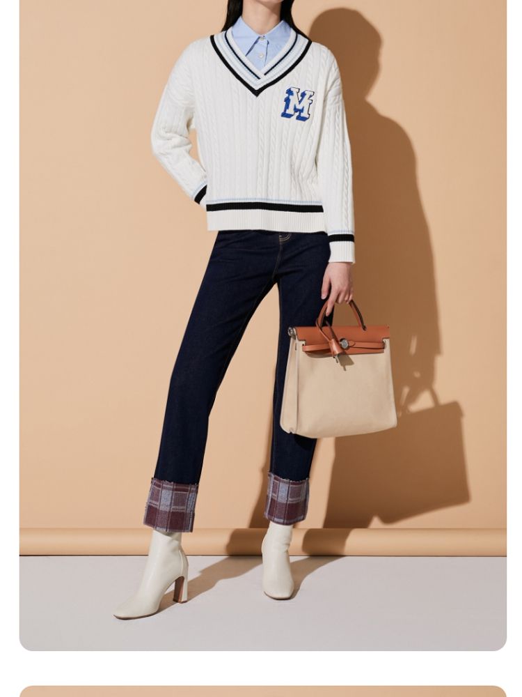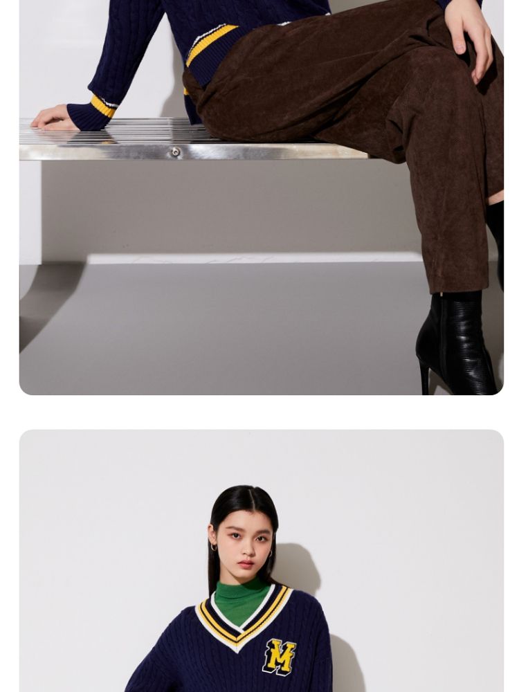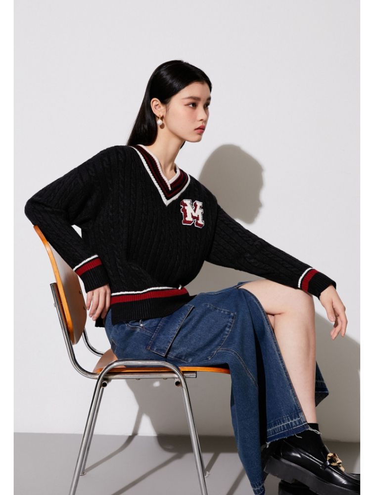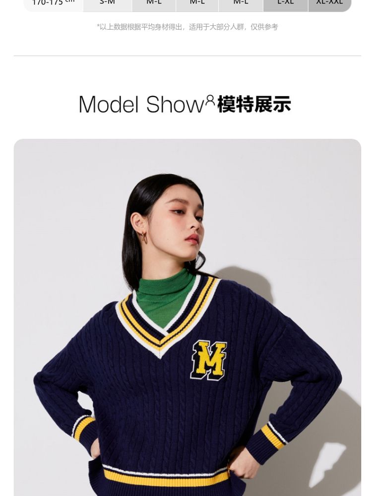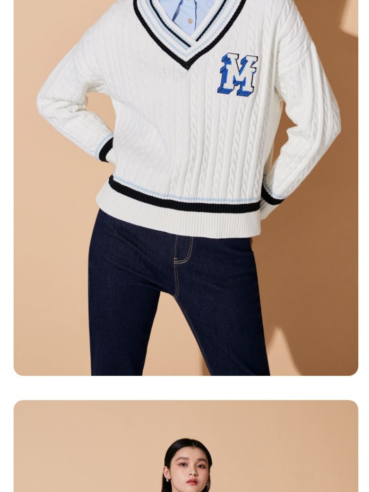 【学院风针织衫】春夏宽松绞花套头V领拼色毛衣百搭 273233