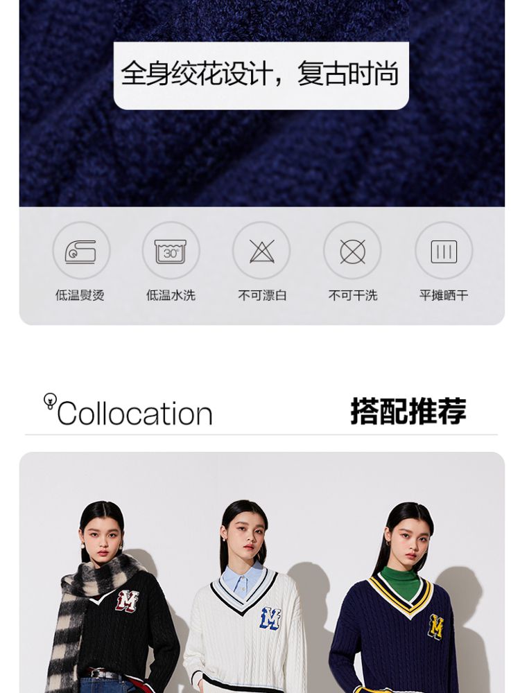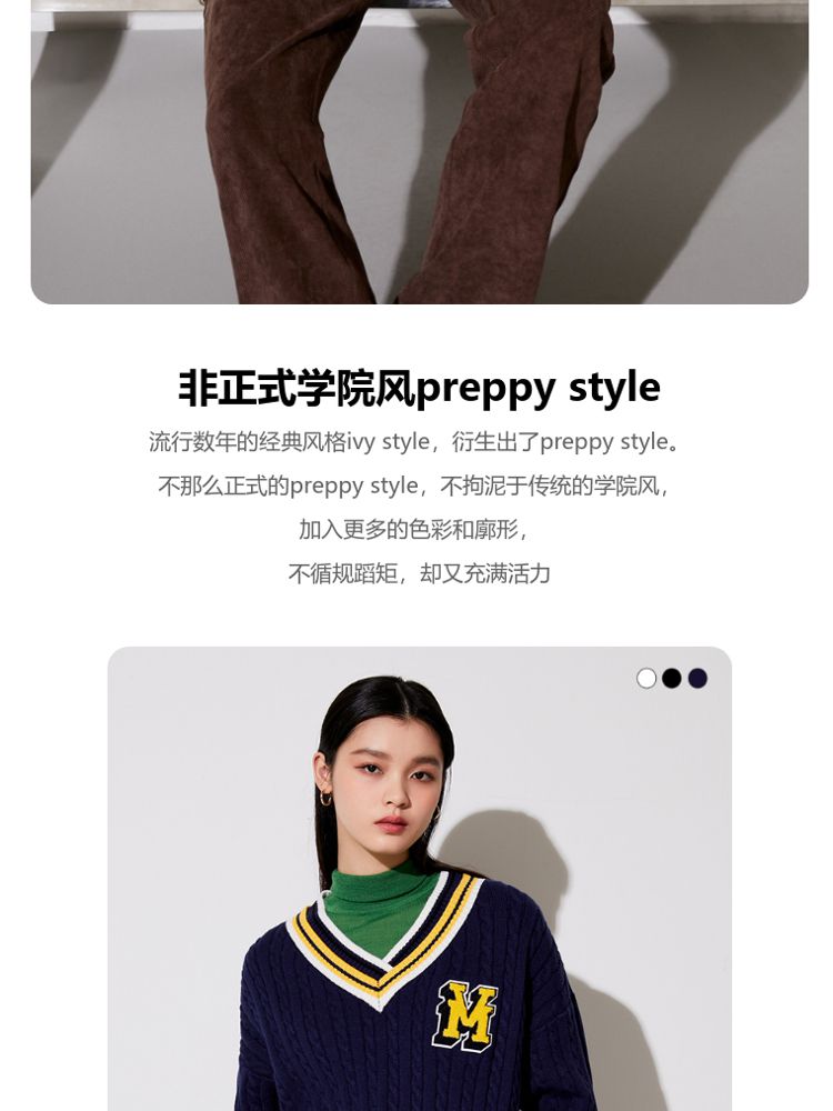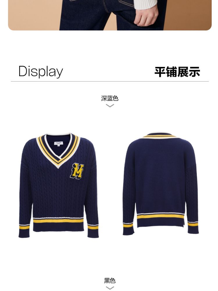 商品名称:【学院风针织衫】春夏宽松绞花套头V领拼色毛衣百搭 273233