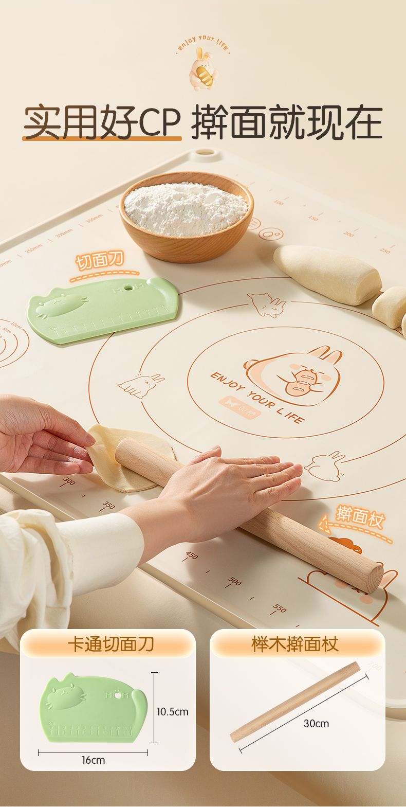 双枪硅胶揉面垫食品级擀面垫