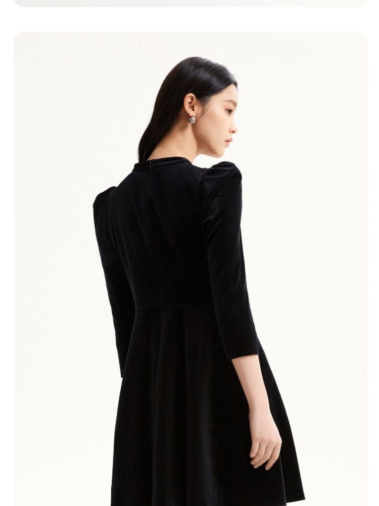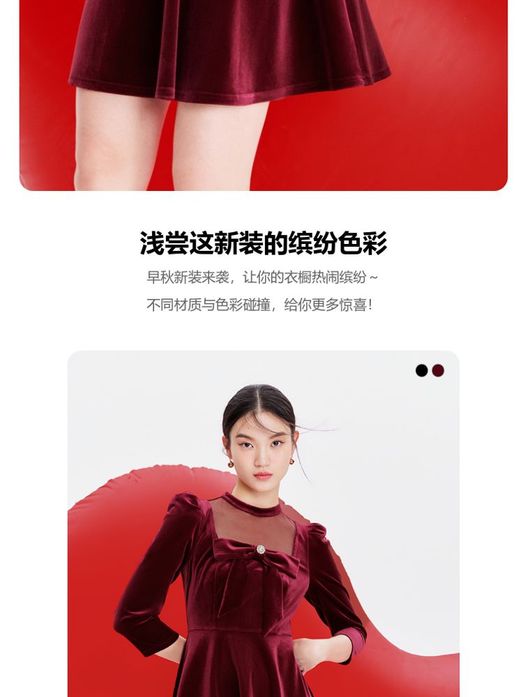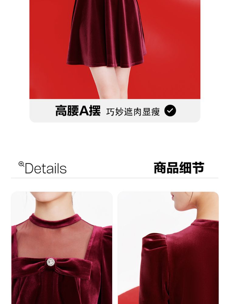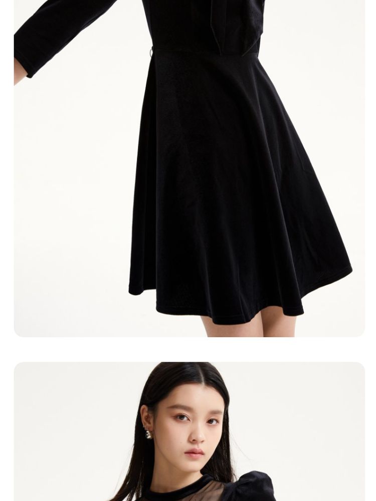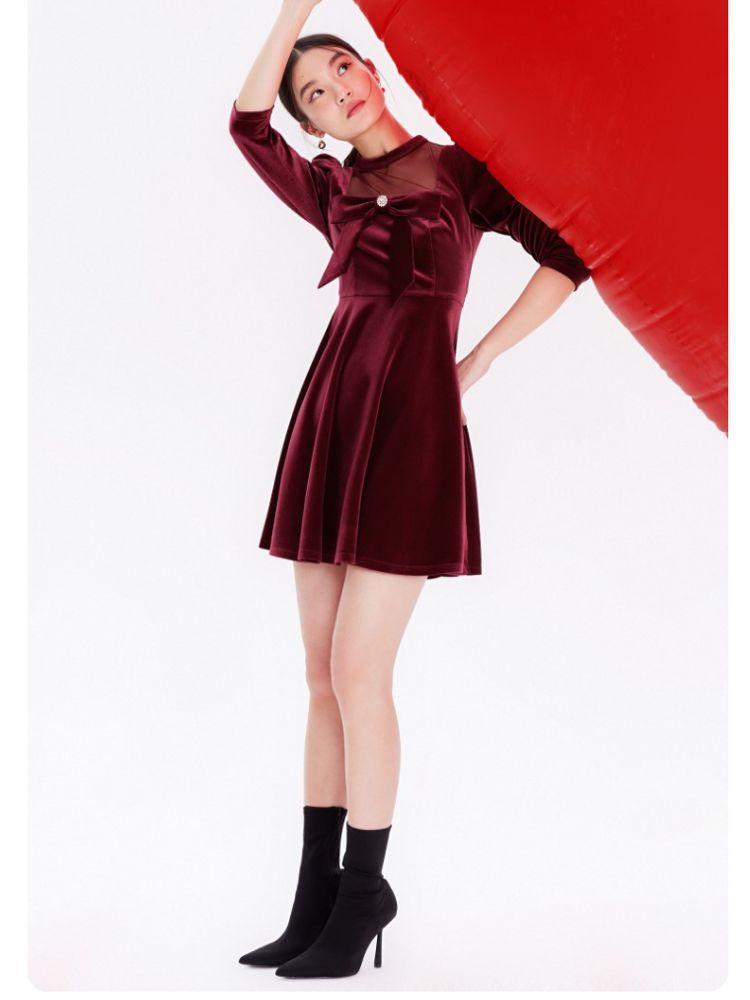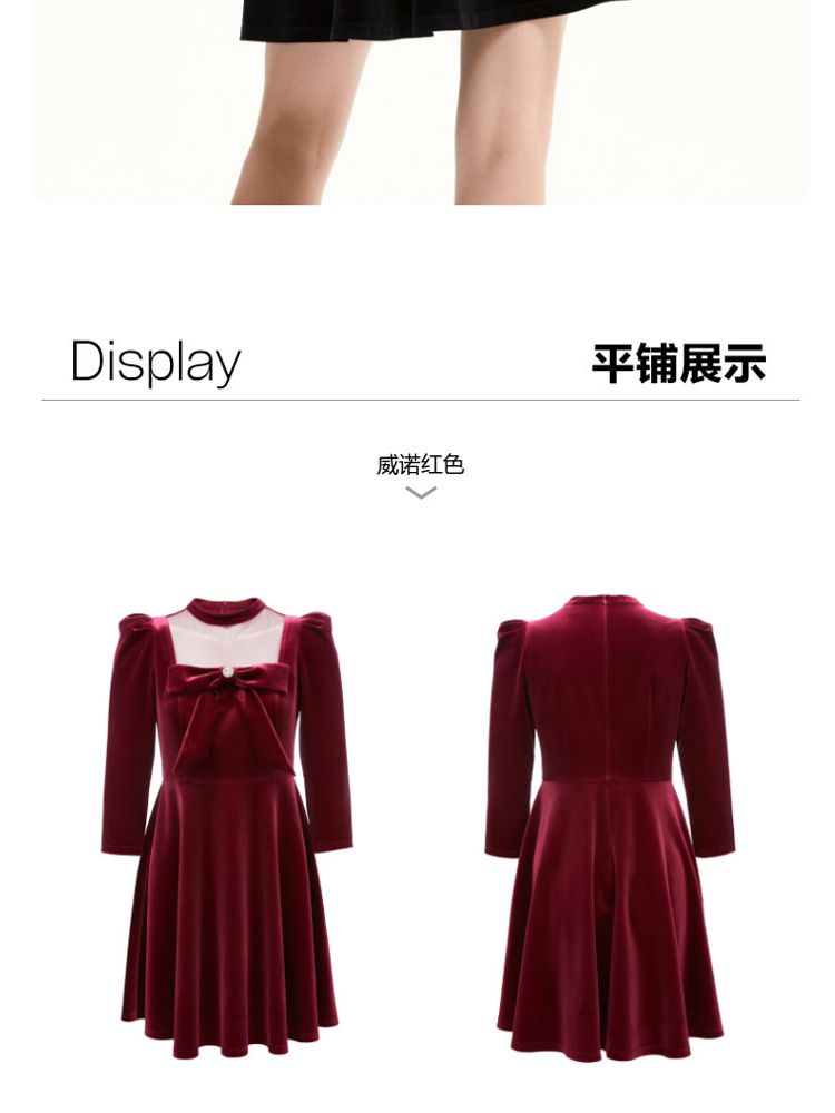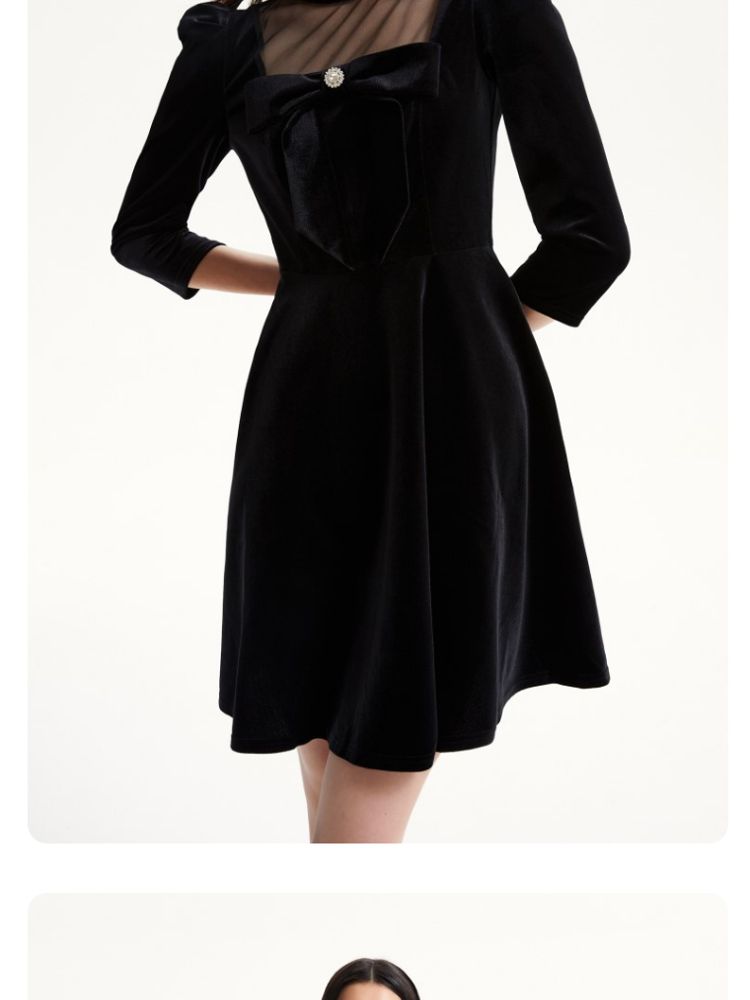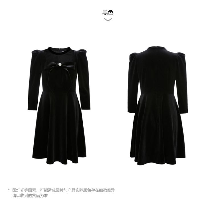 商品名称:丝绒立体蝴蝶结高腰A摆显瘦连衣裙气质百搭时尚春夏 826257