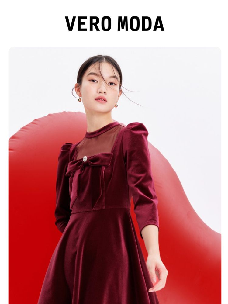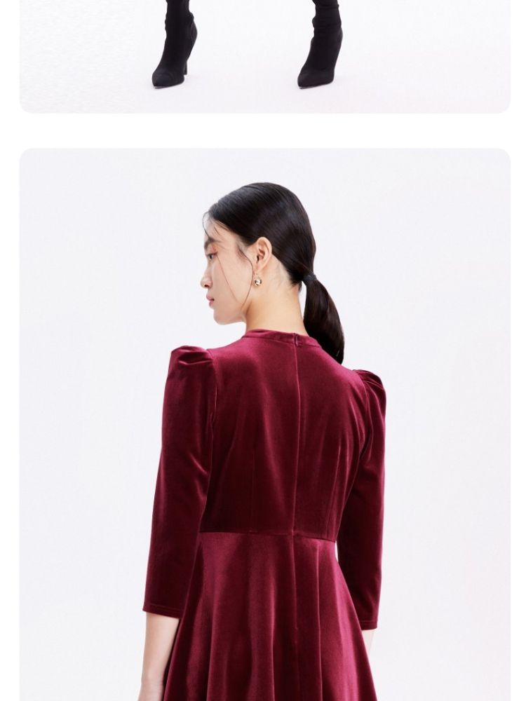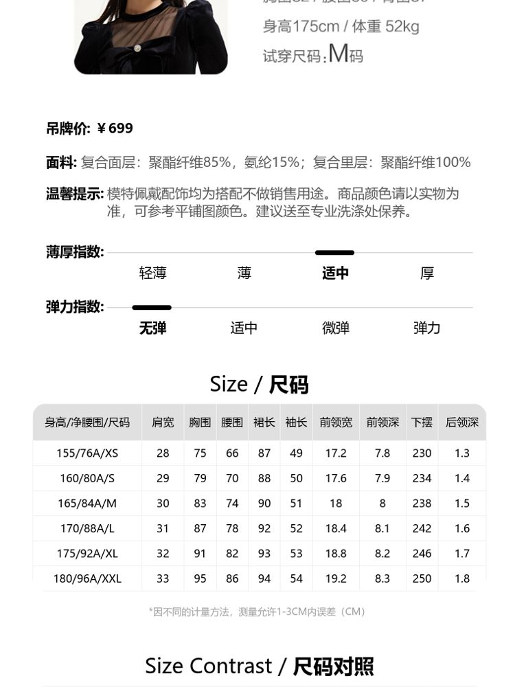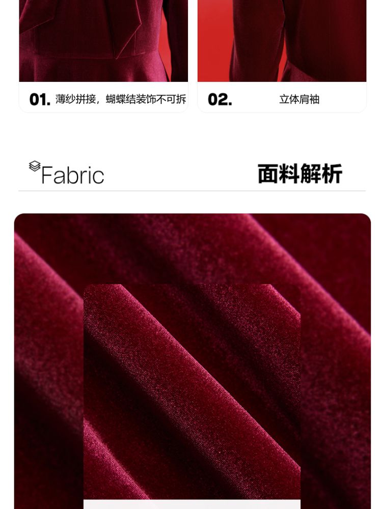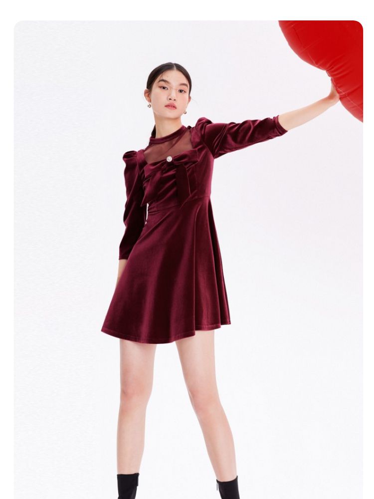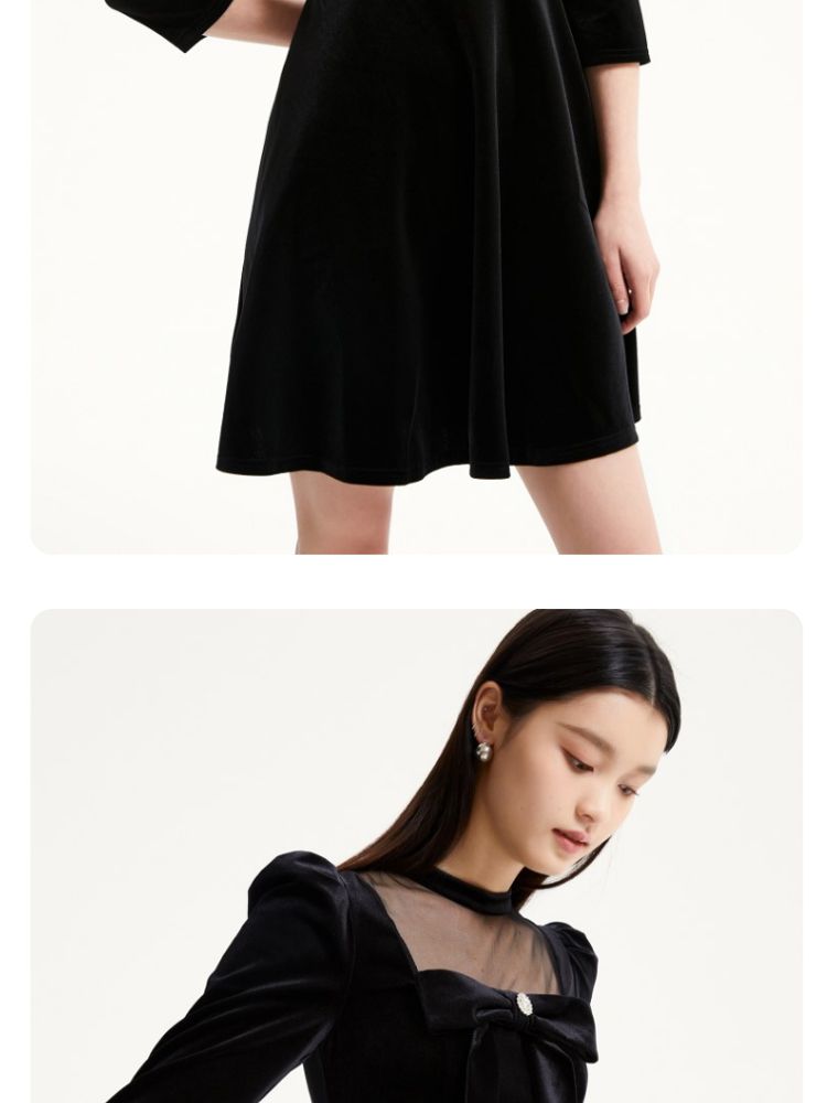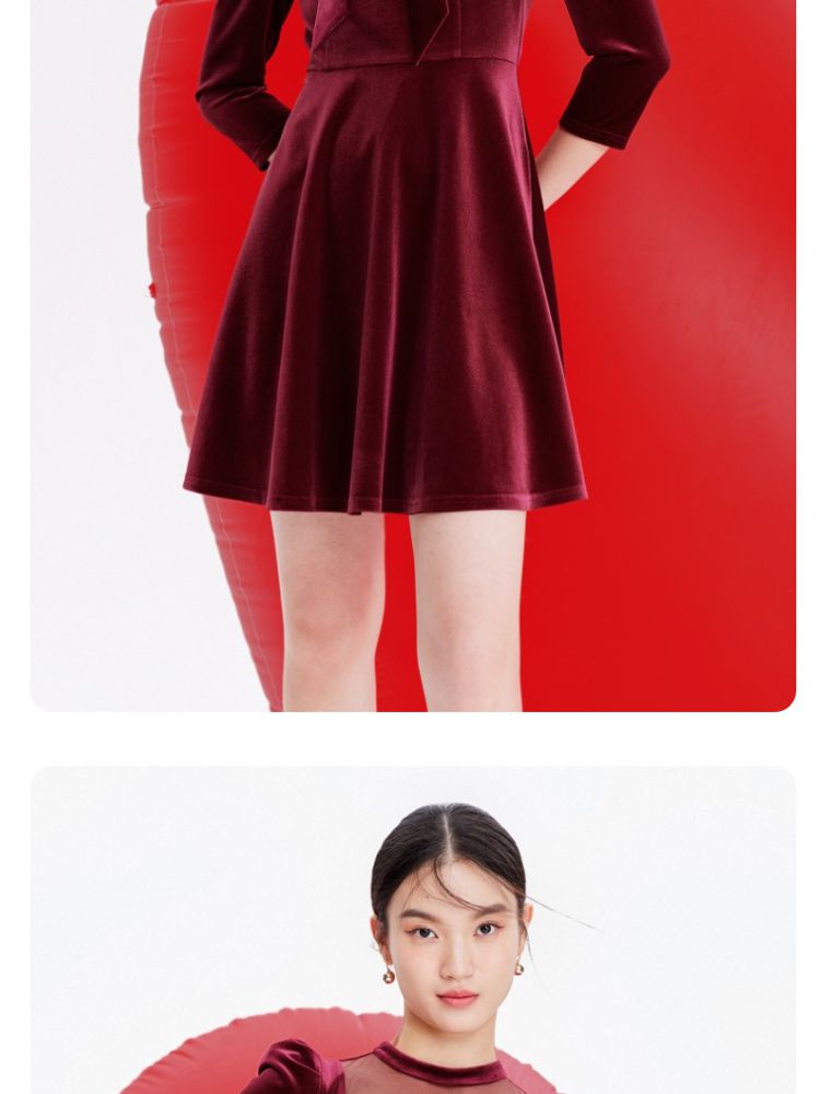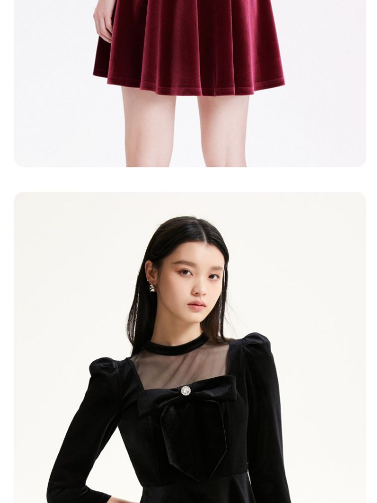 商品名称:丝绒立体蝴蝶结高腰A摆显瘦连衣裙气质百搭时尚春夏 826257