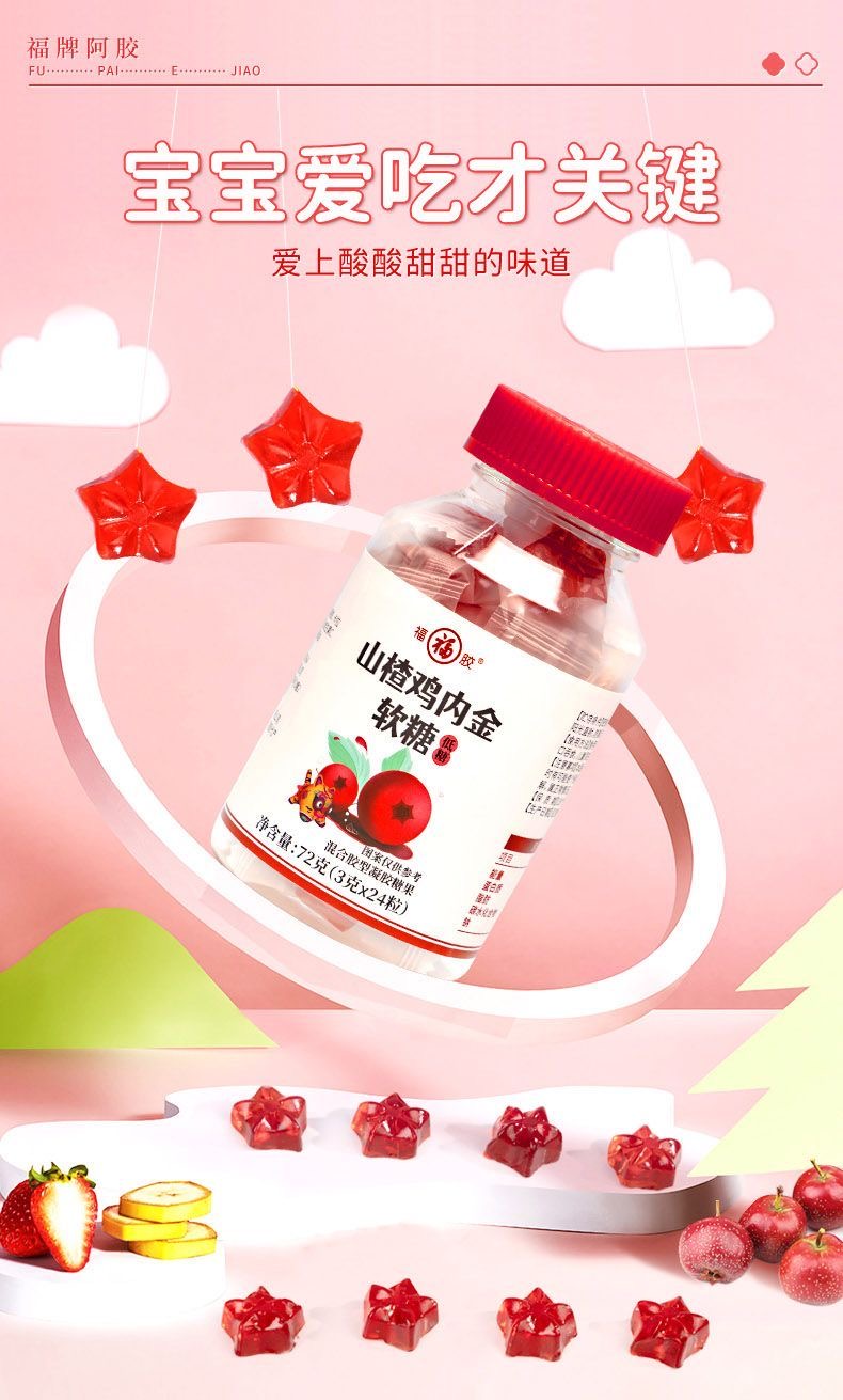 福牌阿胶山楂鸡内金沙棘软糖儿童非调理脾胃幼儿积食厌食零食